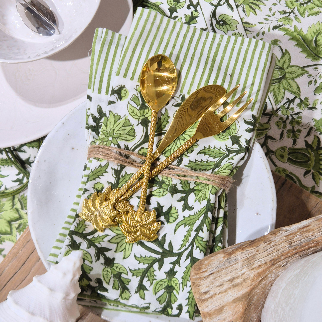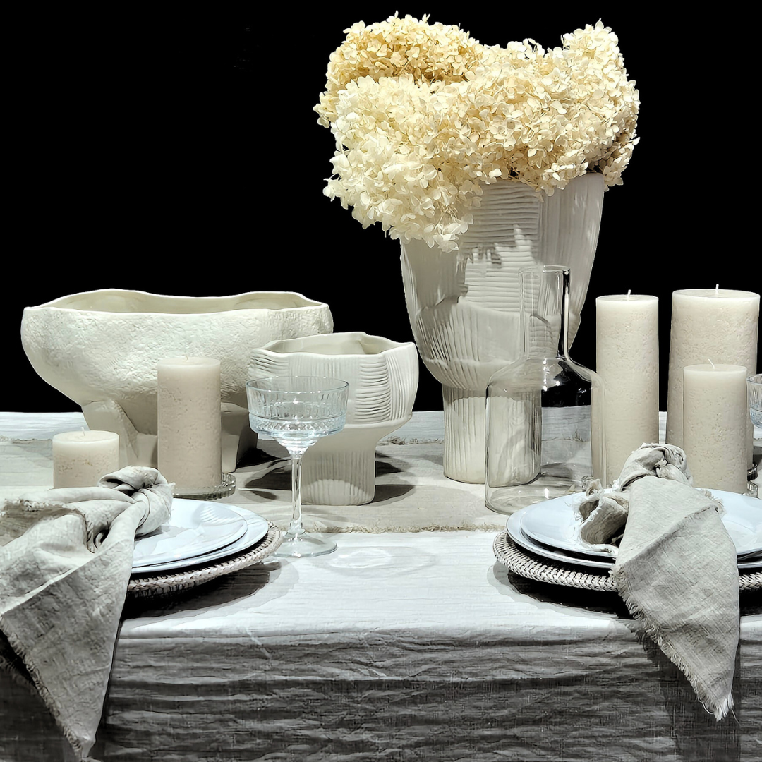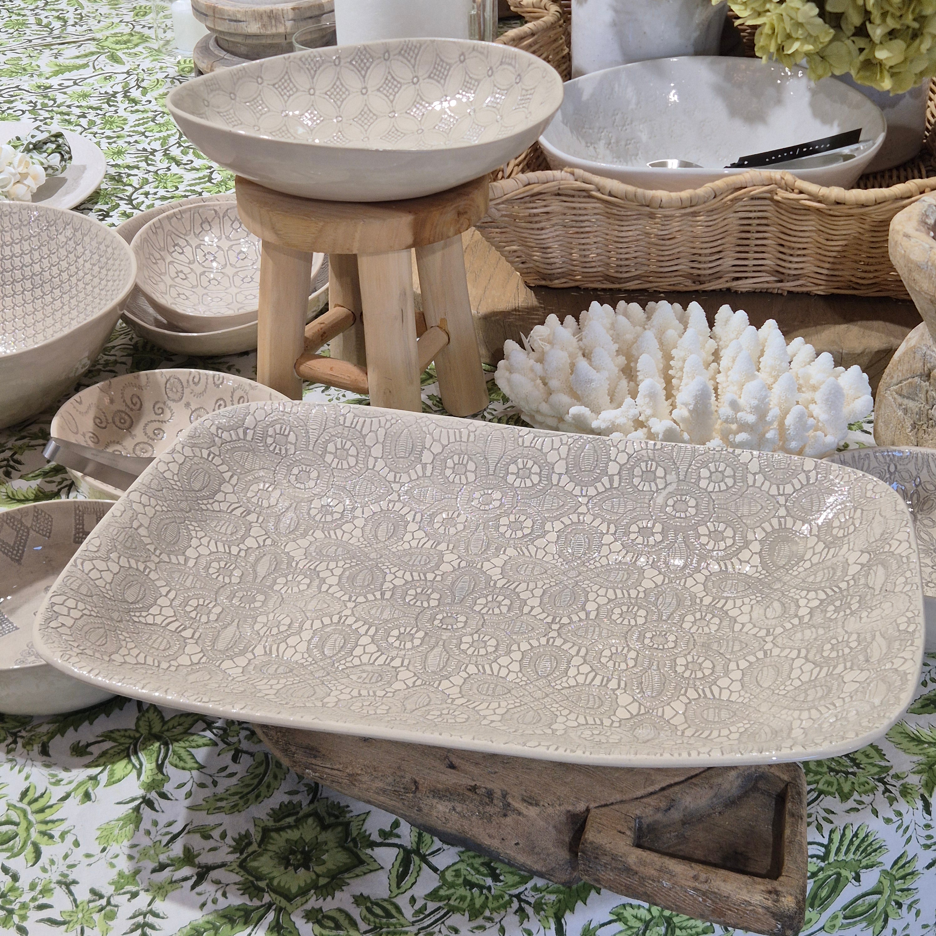 Shop our range of block-printed napery and artisanal tableware