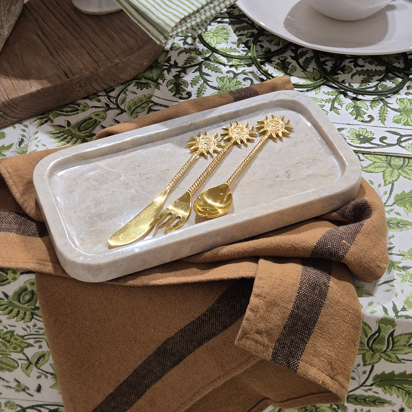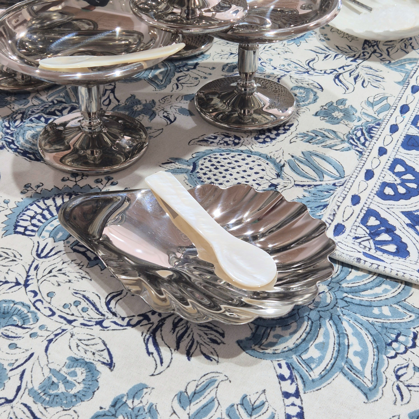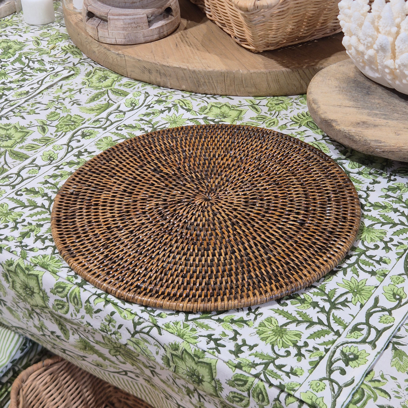 Shop our range of block-printed napery and artisanal tableware