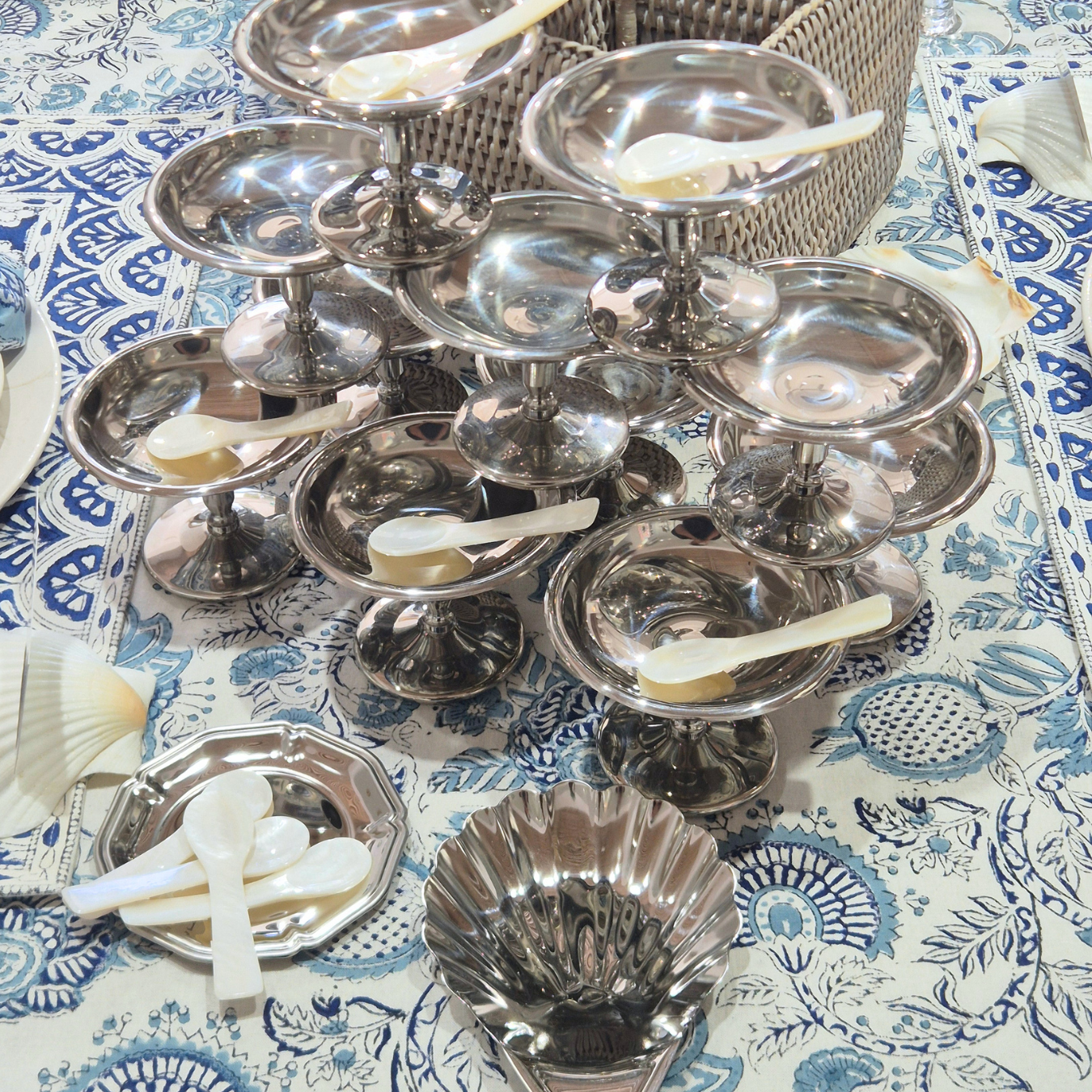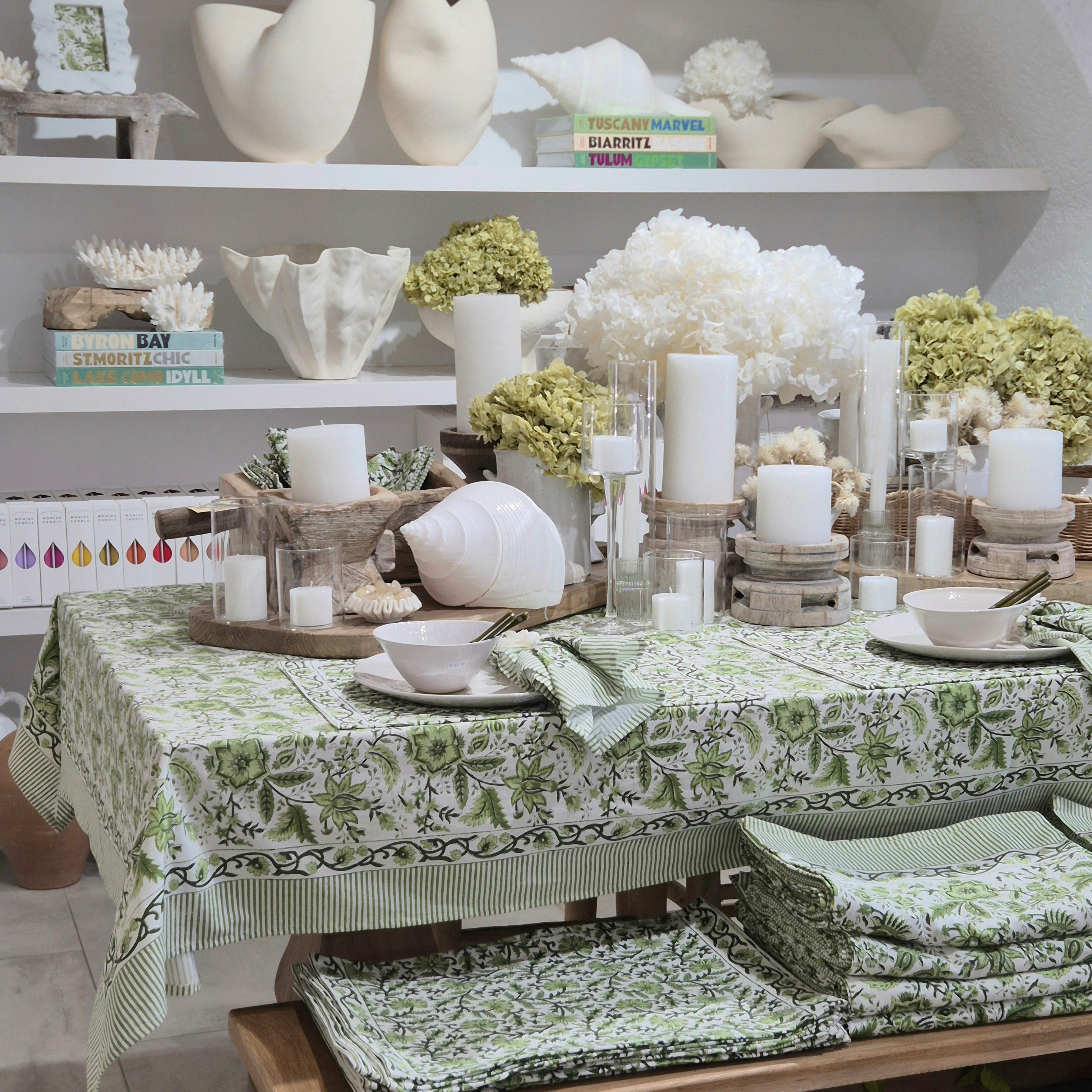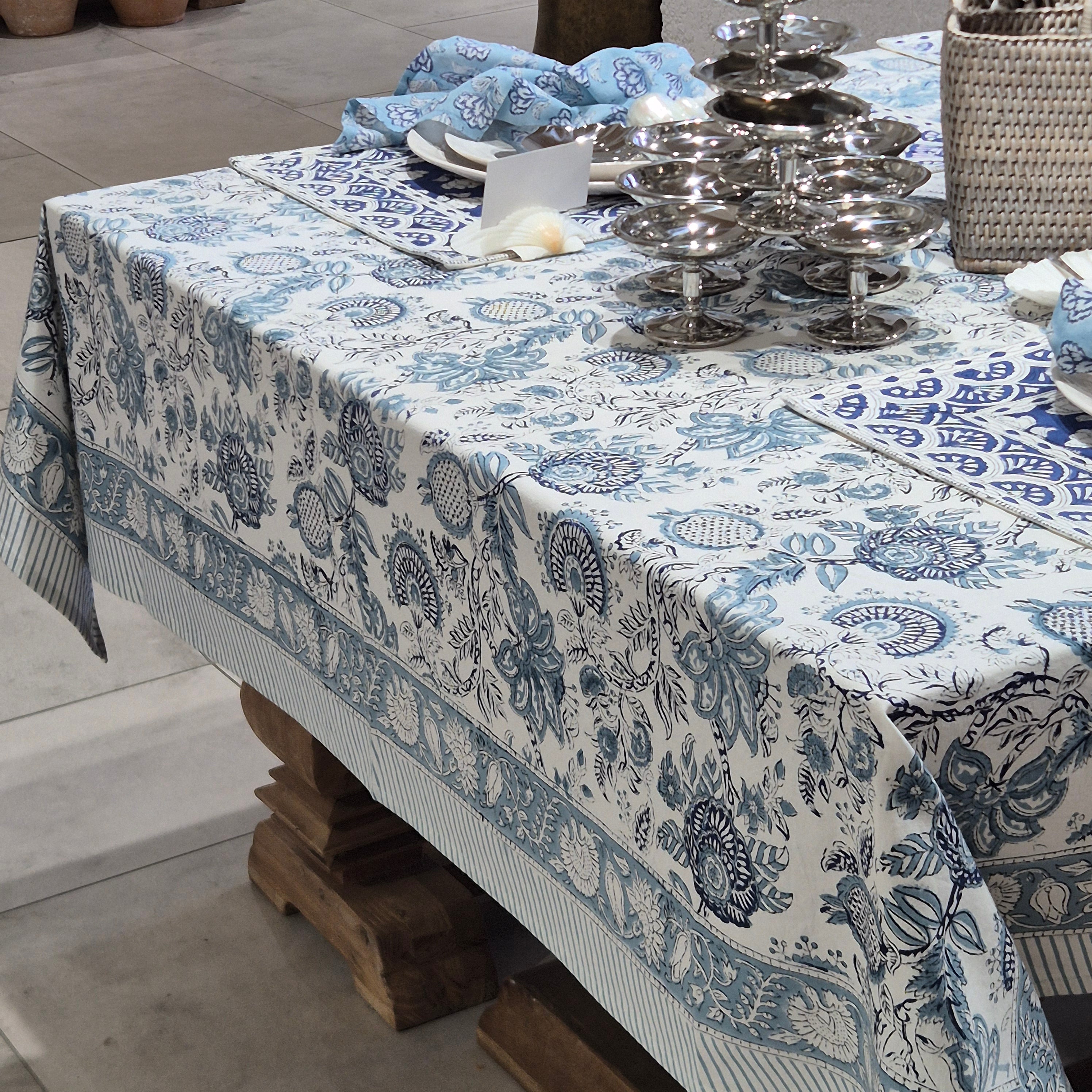 For this new table, we have blended nautical elements with dried botanicals using our Garden Palace Tablecloth as the foundation.