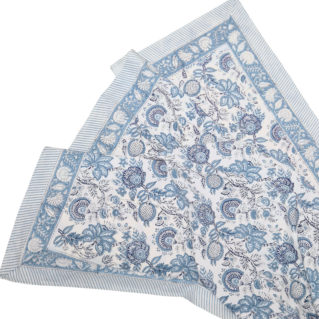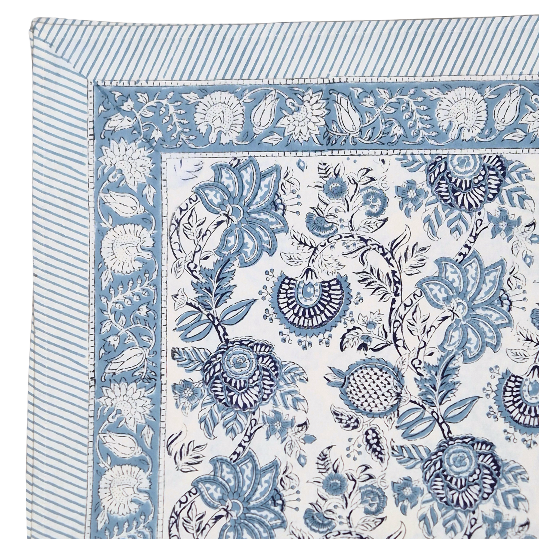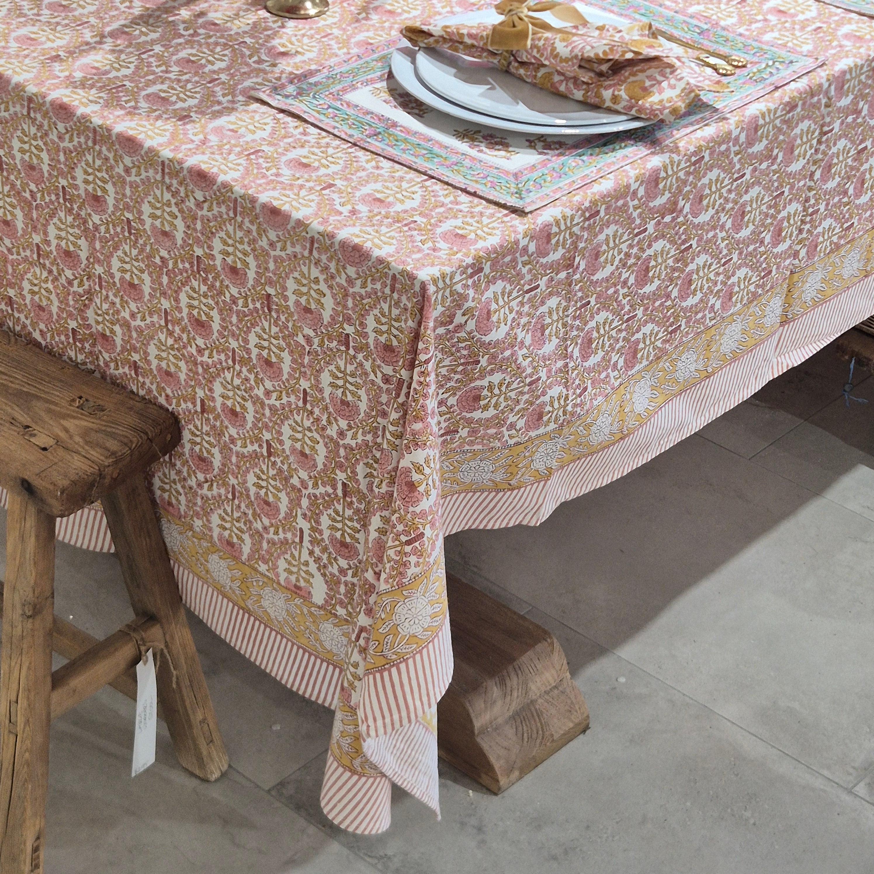 Our Rose Palace range features a matching tablecloth, napkin, and placemat, each block‑printed by hand in India. A timeless set that brings warmth and beauty to any home.