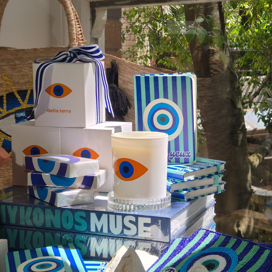 A modern interpretation of the classic eye motif, The Mati Collection highlights form, texture, and thoughtful detail. Each piece — from the candle to the accessories — captures the essence of contemporary design with a hint of symbolic charm.