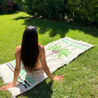 Our 2025 C’est La Vie beach towel channels sun-drenched charm with a carefree spirit. Featuring a stylized palm tree—complete with coconuts—and the phrase c’est la vie, a gentle reminder to go with the flow.