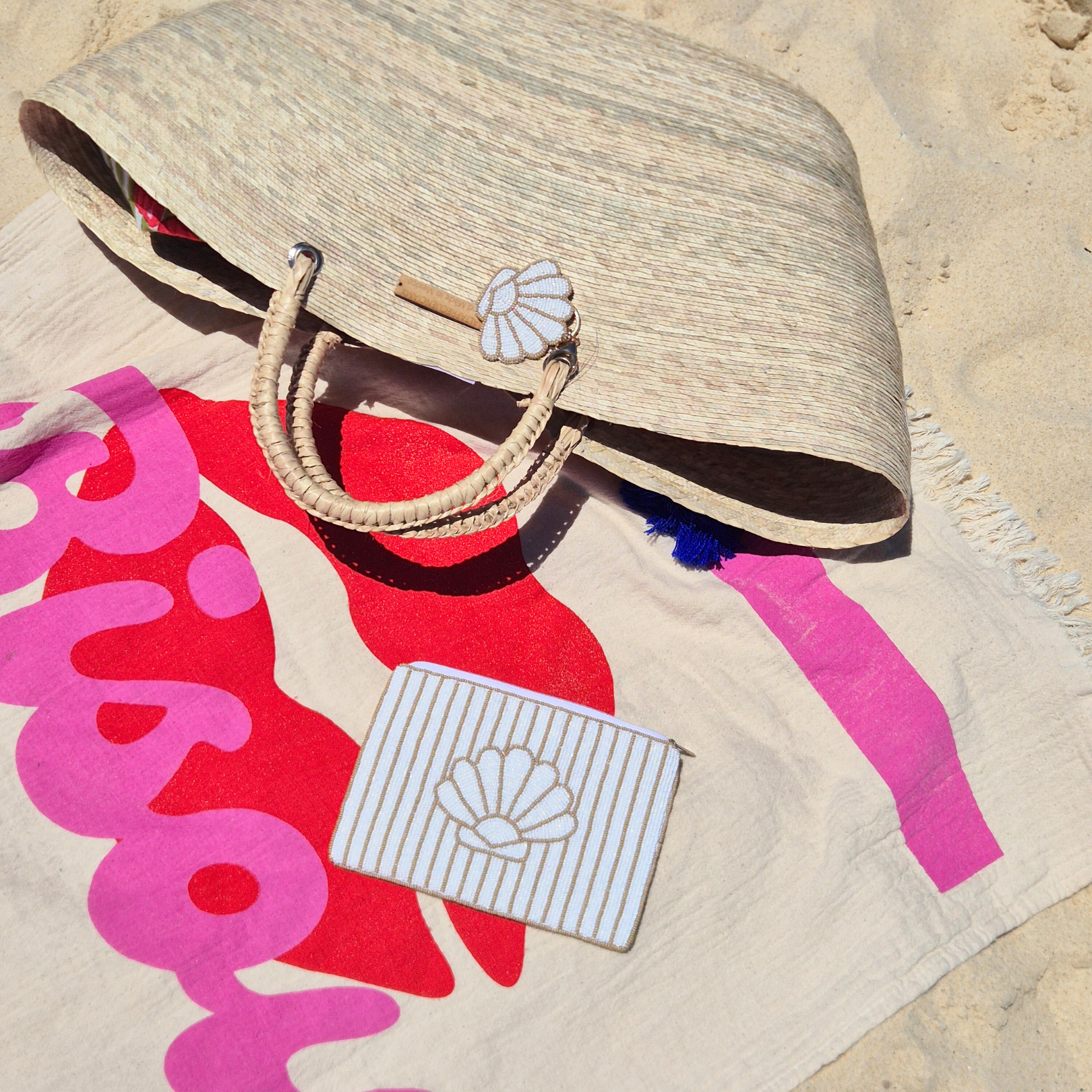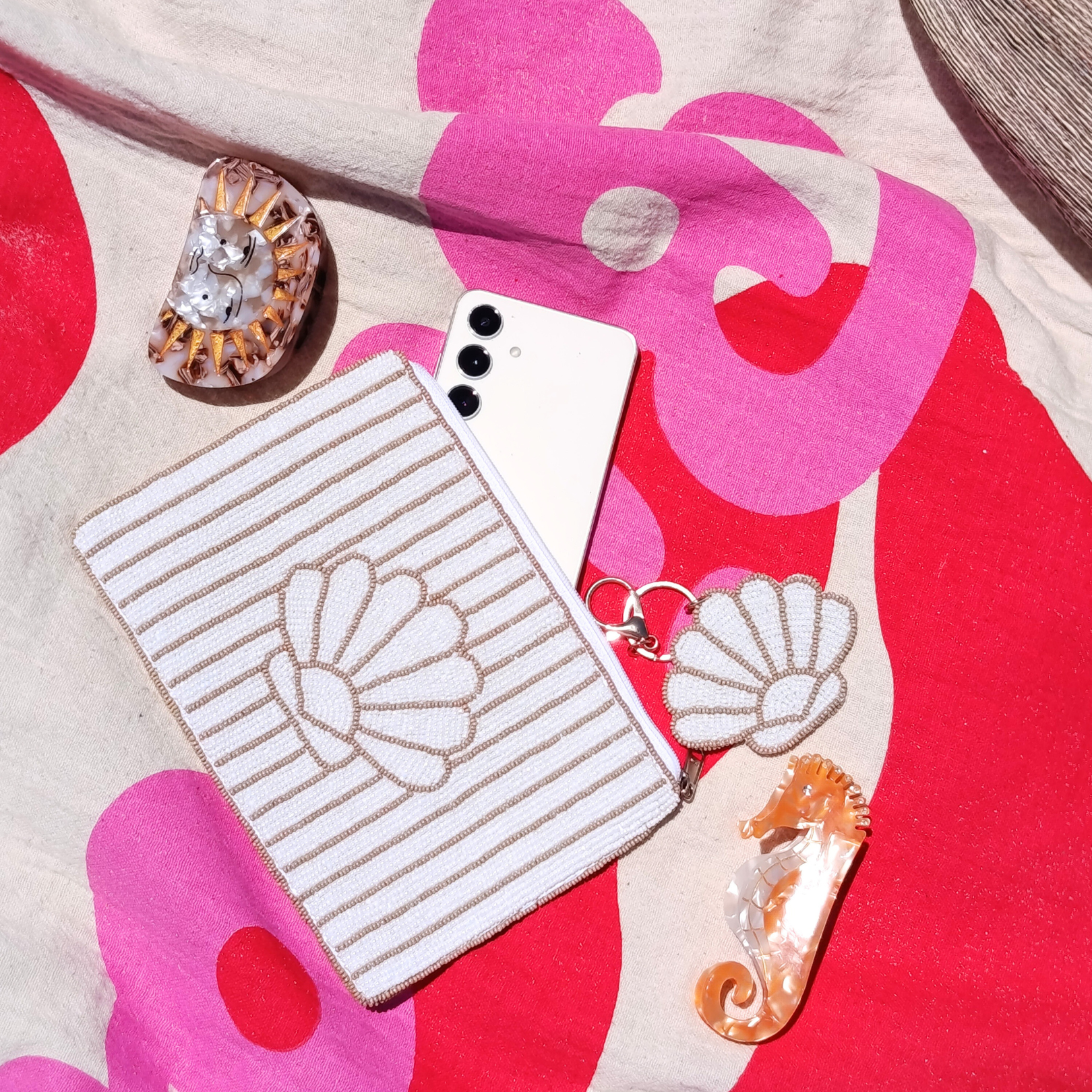 Spacious enough to hold your phone, keys, and cards, this pouch is perfect for slipping into your tote or carrying solo for a touch of seaside glamour. Whether you're heading to brunch, the beach, or a summer soirée, it’s the kind of piece that whispers effortless style.