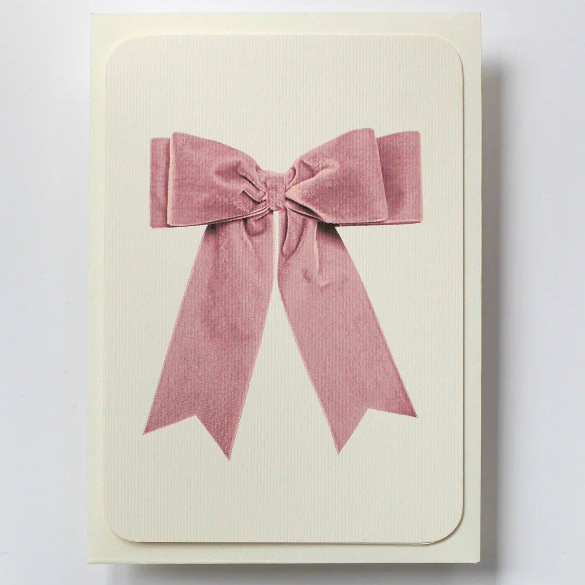 This elegant greeting card features a pretty pink velvet bow artwork printed on the cover, offering a refined and charming design suitable for various occasions. Crafted with quality materials and accompanied by a matching envelope, it ensures a complete and polished presentation. Proudly printed in England, this card combines classic style with expert craftsmanship.