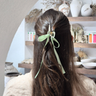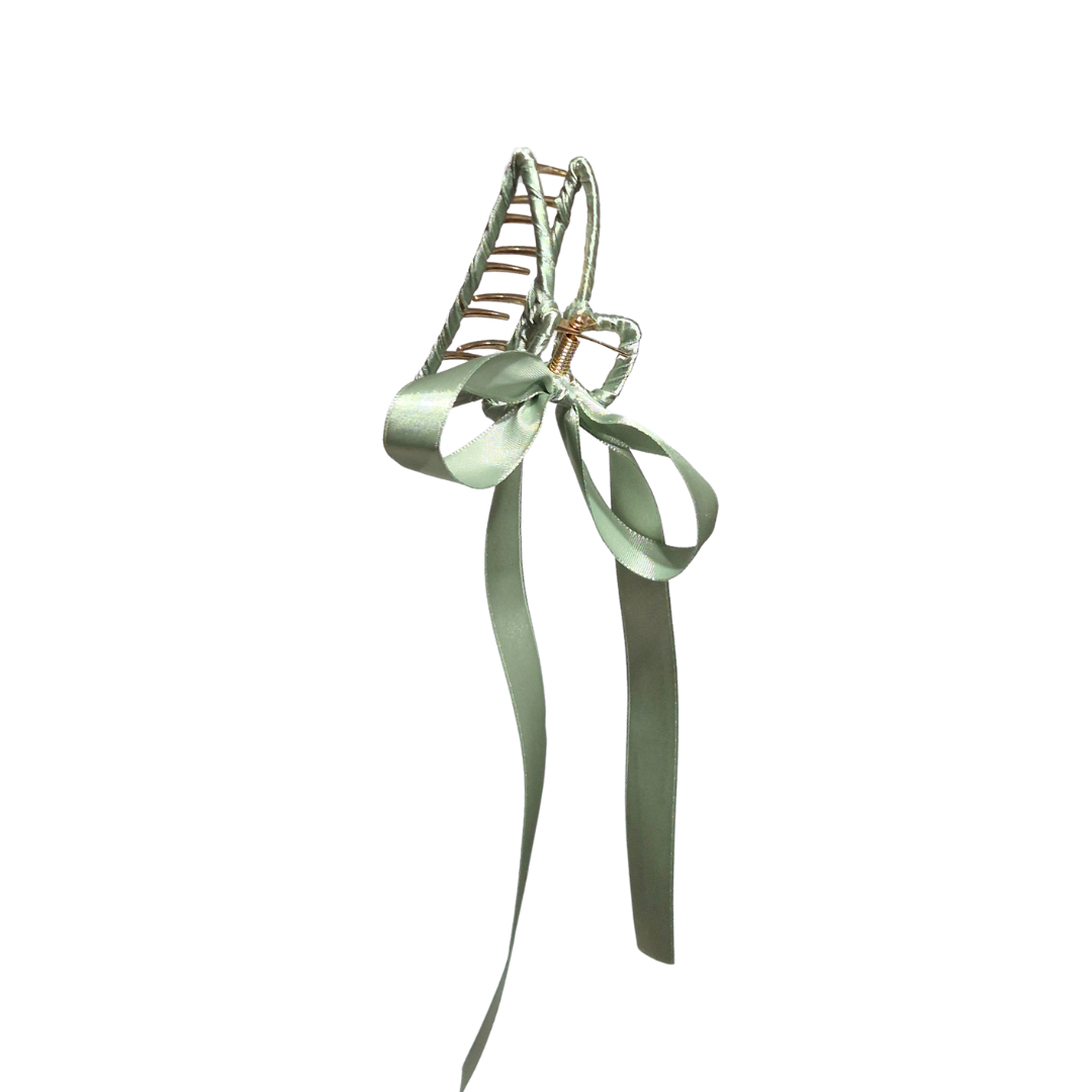 Green Ribbon Bow Hair Claw Clip
