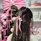 Peachy Pink Ribbon Bow Hair Claw Clip