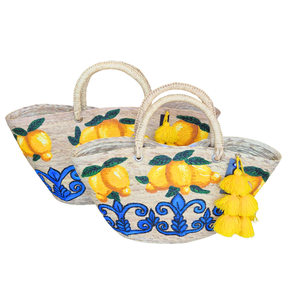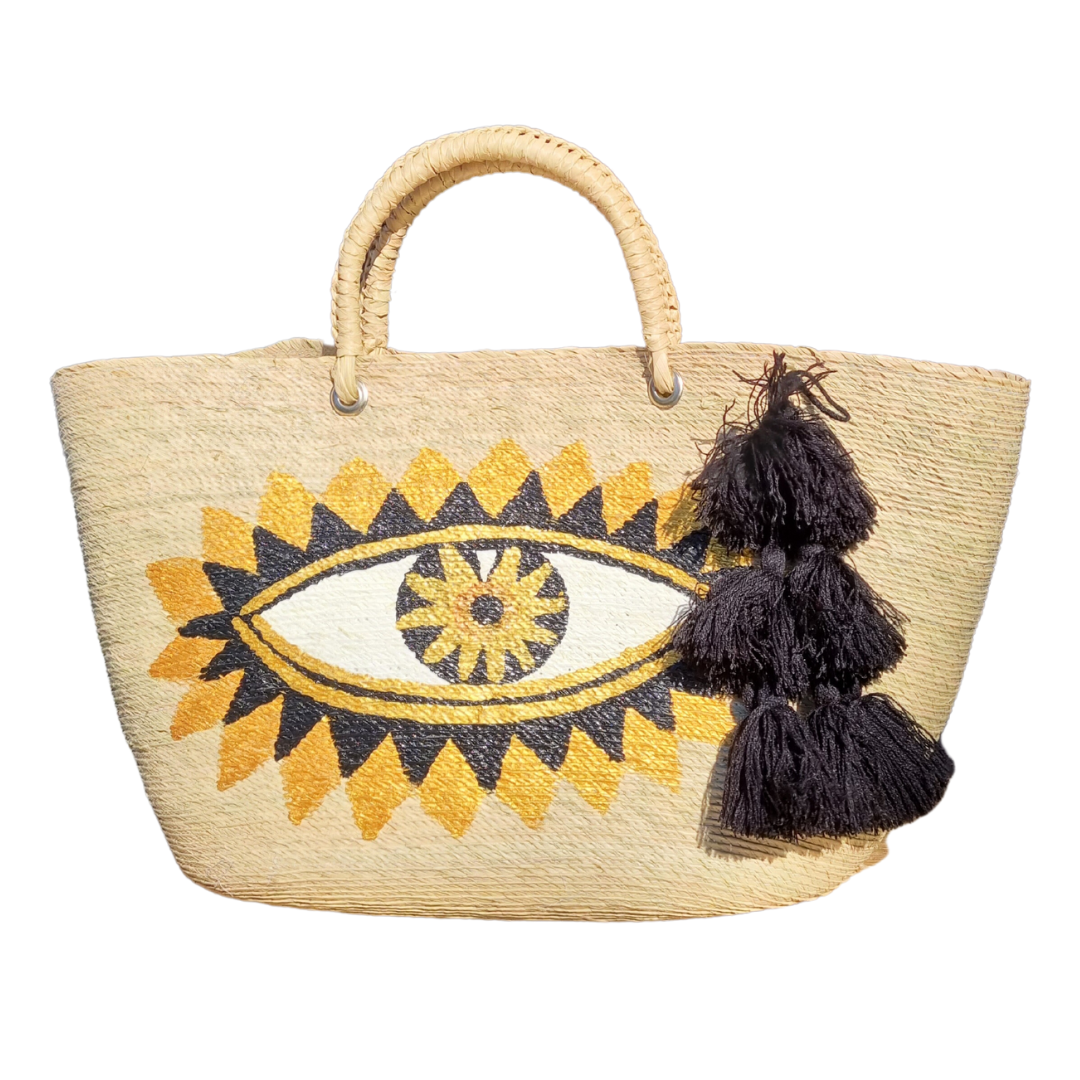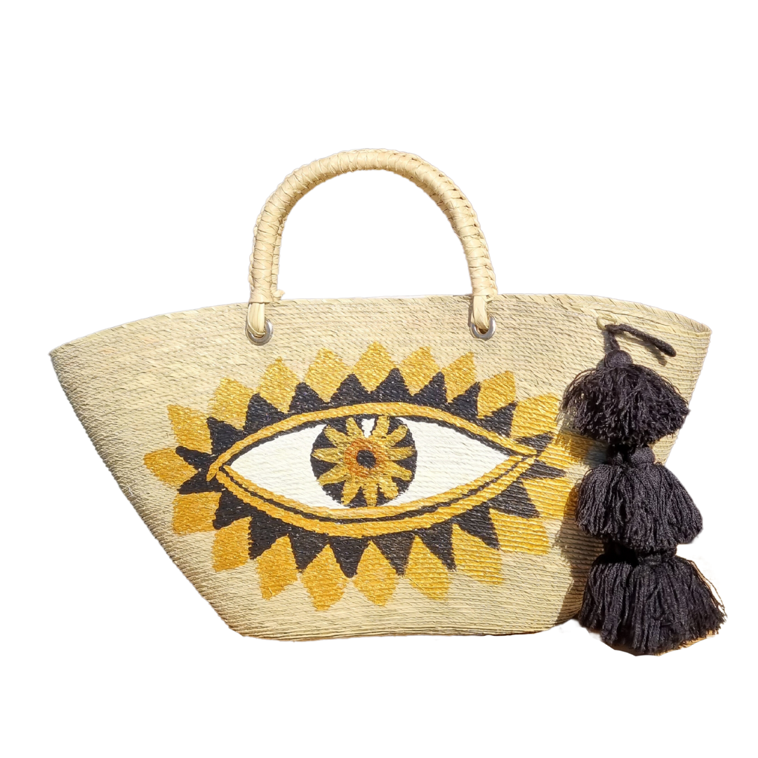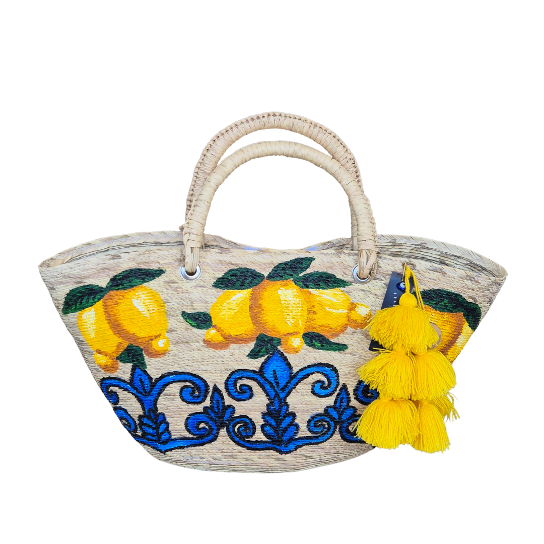 Goddess of Pleasure - Lemon Woven Palm Beach Bag