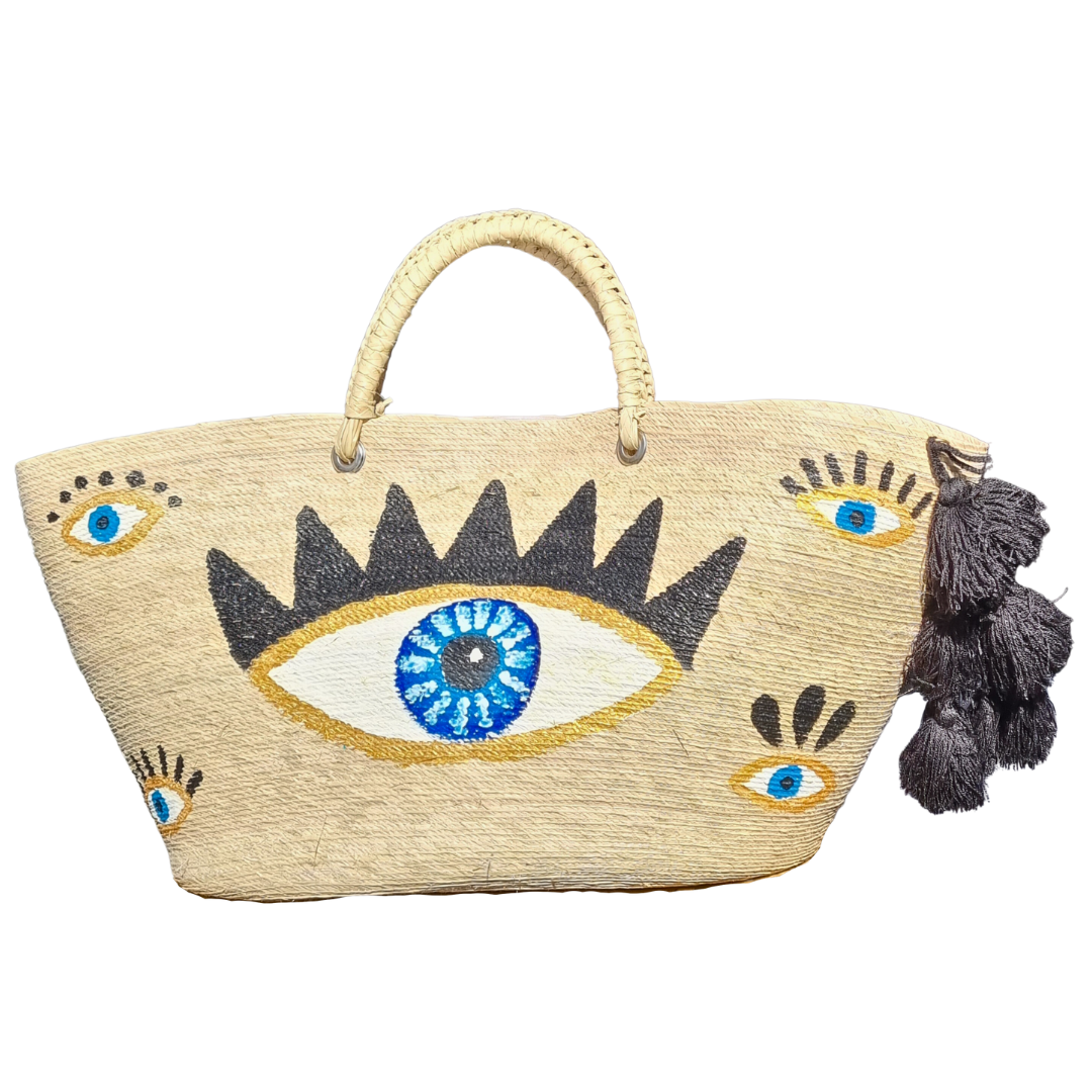 Our goddess bags celebrate summer, warmth and the beauty of crystal-looking sparkling oceans. They are hand-painted and are both a stylish accessory and the perfect bag to grab when popping off to the beach, having a lunch out, strolling around the market or lazing by the pool. So chic, so versatile and they come in two great sizes. The medium is perfect for yourself or the large if you're carrying towels for your loved ones. All bags come adorned with pompoms. Never leave home without looking like the goddess you are!