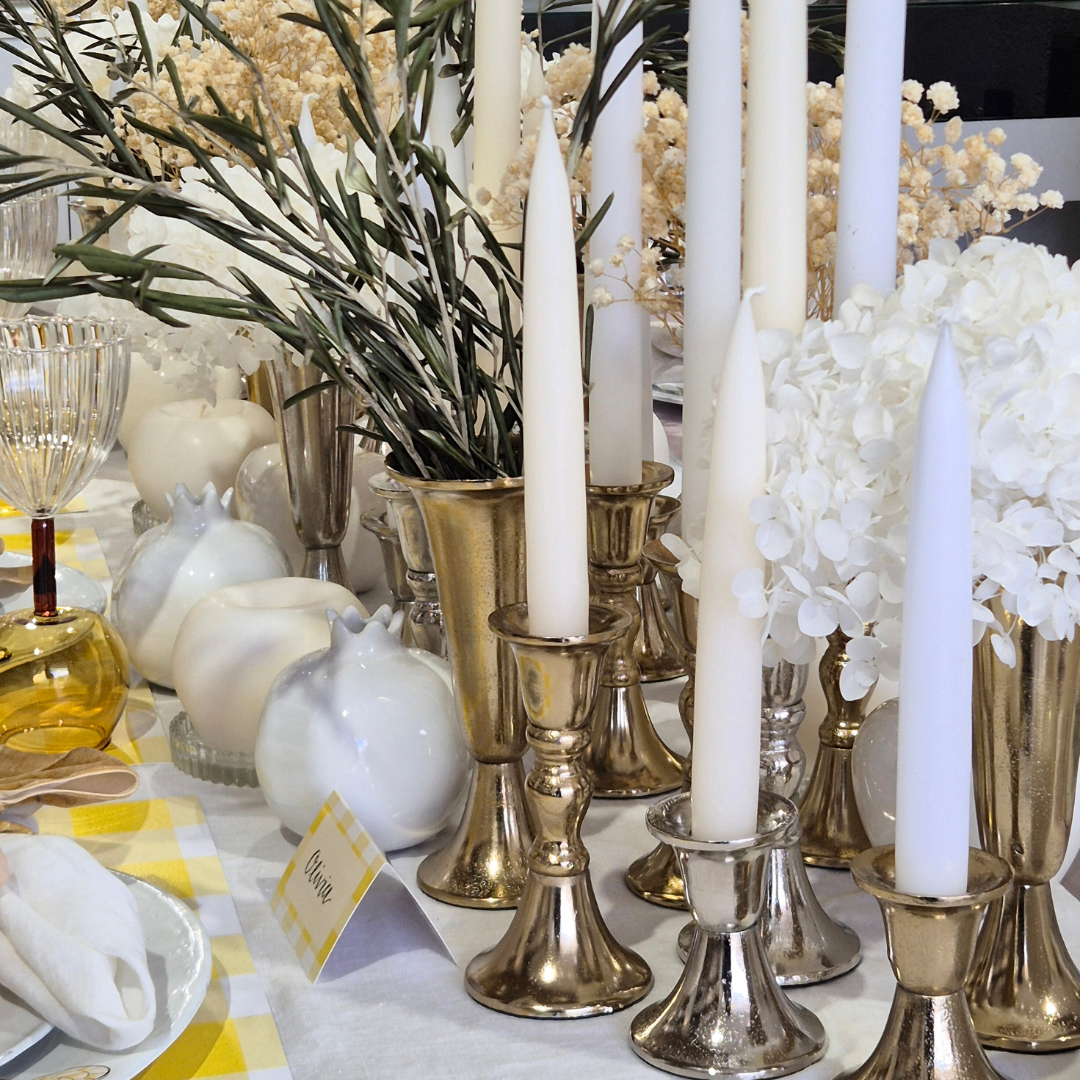 Designed for versatility, these sculptural candlesticks shine as standalone pieces or create a striking statement when clustered together. Whether you're styling a formal dinner or an intimate gathering, the Celine Collection adds a touch of modern elegance and timeless charm.