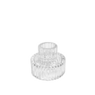 Illuminate your space with a touch of sophistication using this Clear Ribbed Glass Candle Holder. Crafted with precision, this candle holder features a double-tiered design that adds a contemporary flair to any setting. The ribbed texture enhances its reflective quality, casting beautiful light patterns when paired with a lit candle. Perfect for creating a warm and inviting atmosphere, whether for a special occasion or everyday elegance. This versatile piece complements a variety of decor styles, making it an ideal addition to your home or as a thoughtful gift for loved ones.