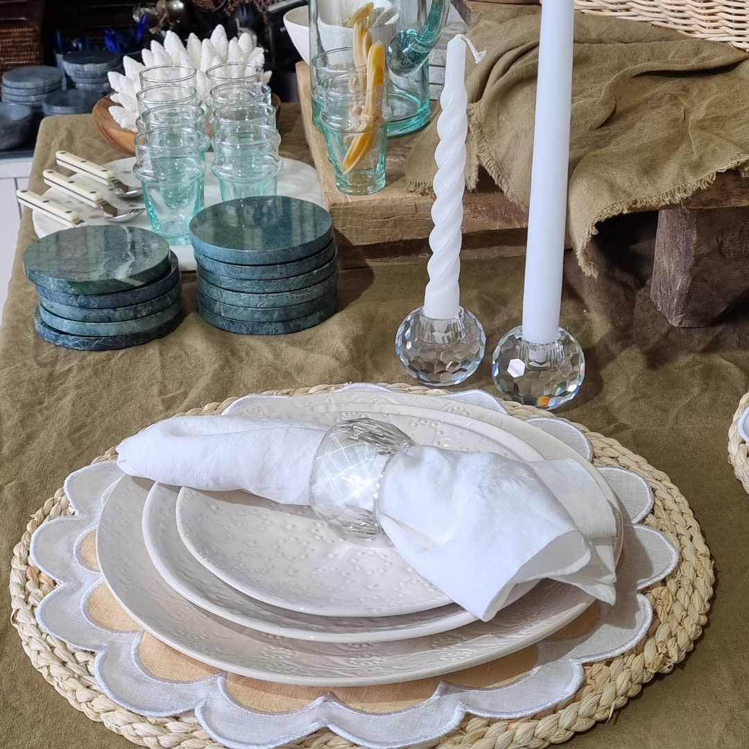 Elevate your tablesetting with our faceted crystal candleholders. Pair them with our dripless tapered candles.