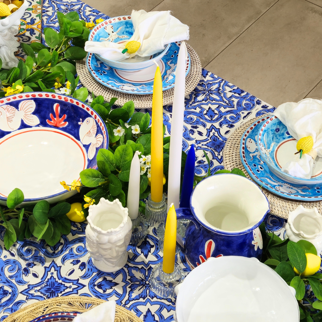 Our Moniek candle sparks beauty and light to your table setting. The inviting golden hue and elegant pillar design make it an ideal choice for creating a cozy atmosphere at any gathering. This candle is not just a source of light; it's a statement piece that enhances your table decor, whether it's a romantic dinner or a casual get-together.