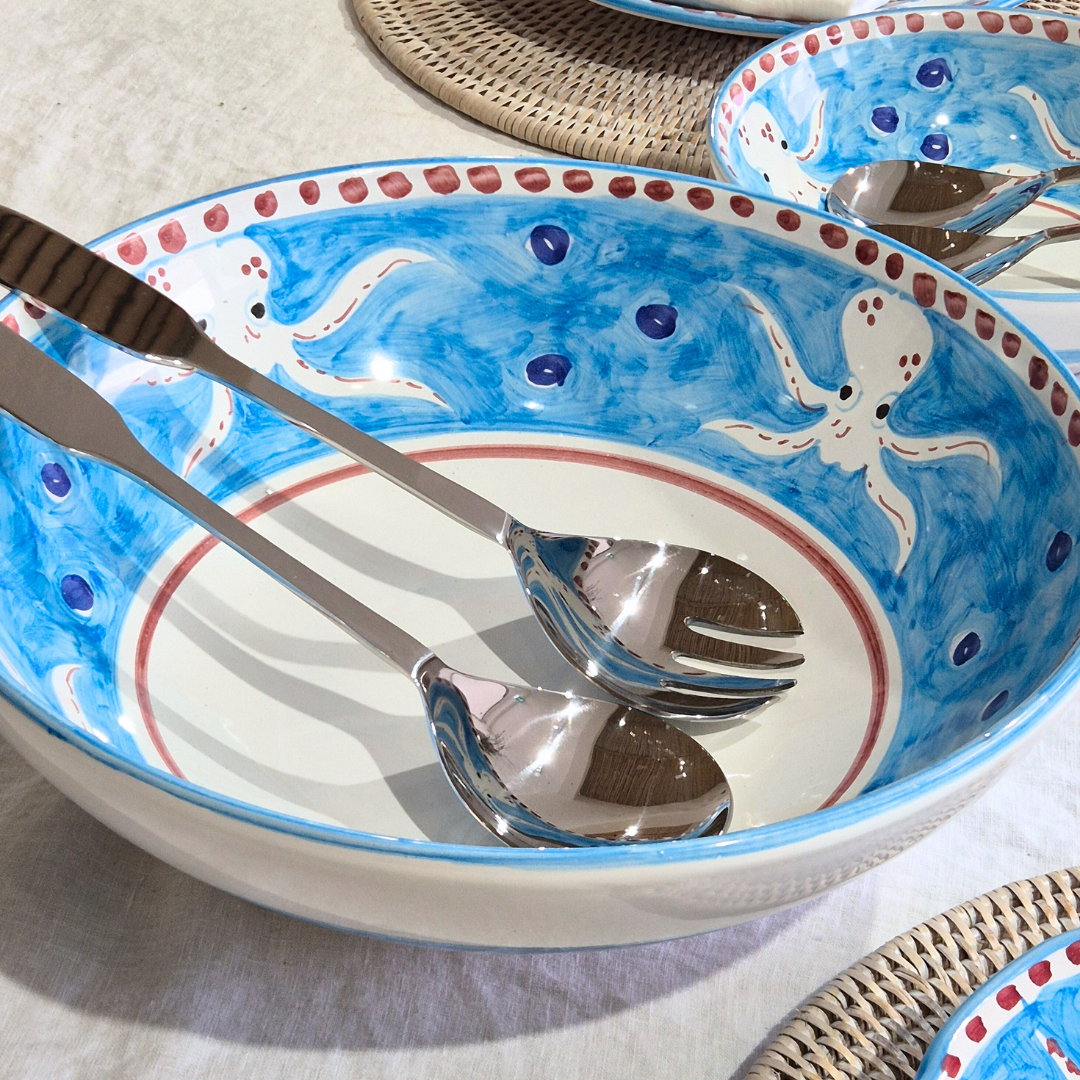 Designed and crafted for durability and timeless appeal, their elongated handles provide a comfortable grip while adding a sleek, modern accent to your table. Whether paired with ceramic platters or linen napkins, these servers bring quiet sophistication to shared meals and special gatherings alike.
