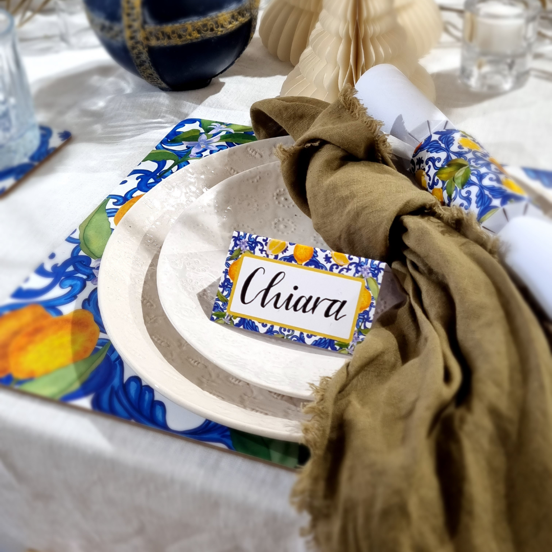 Add a touch of inviting warmth to your table with our personalized table placecards. Meticulously designed and printed in Sydney, our 2023 collection offers two charming variants: Sicily and Amalfi.