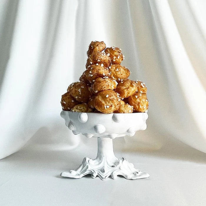 Carron Paris brings you the Mademoiselle Footed Bowl, a stunning piece of art. Whether used as a primary vase, a decorative element for plant pots, or a striking donut vase, its pristine white finish and textured design exude timeless elegance. This large vase captures attention and serves as the perfect canvas for your floral arrangements. Handcrafted with care, it's not just a vase but a symbol of artisanal excellence.