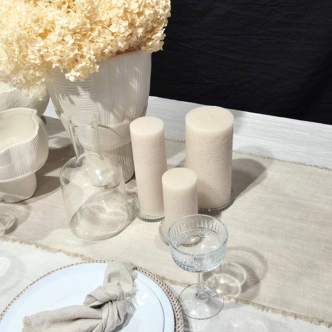Update your table setting with our Comme Ça collection of frayed edge table runners. Perfectly suited to your specified table as they are in a variety of sizes - allowing for an abundant drape and enhancing your table setting.