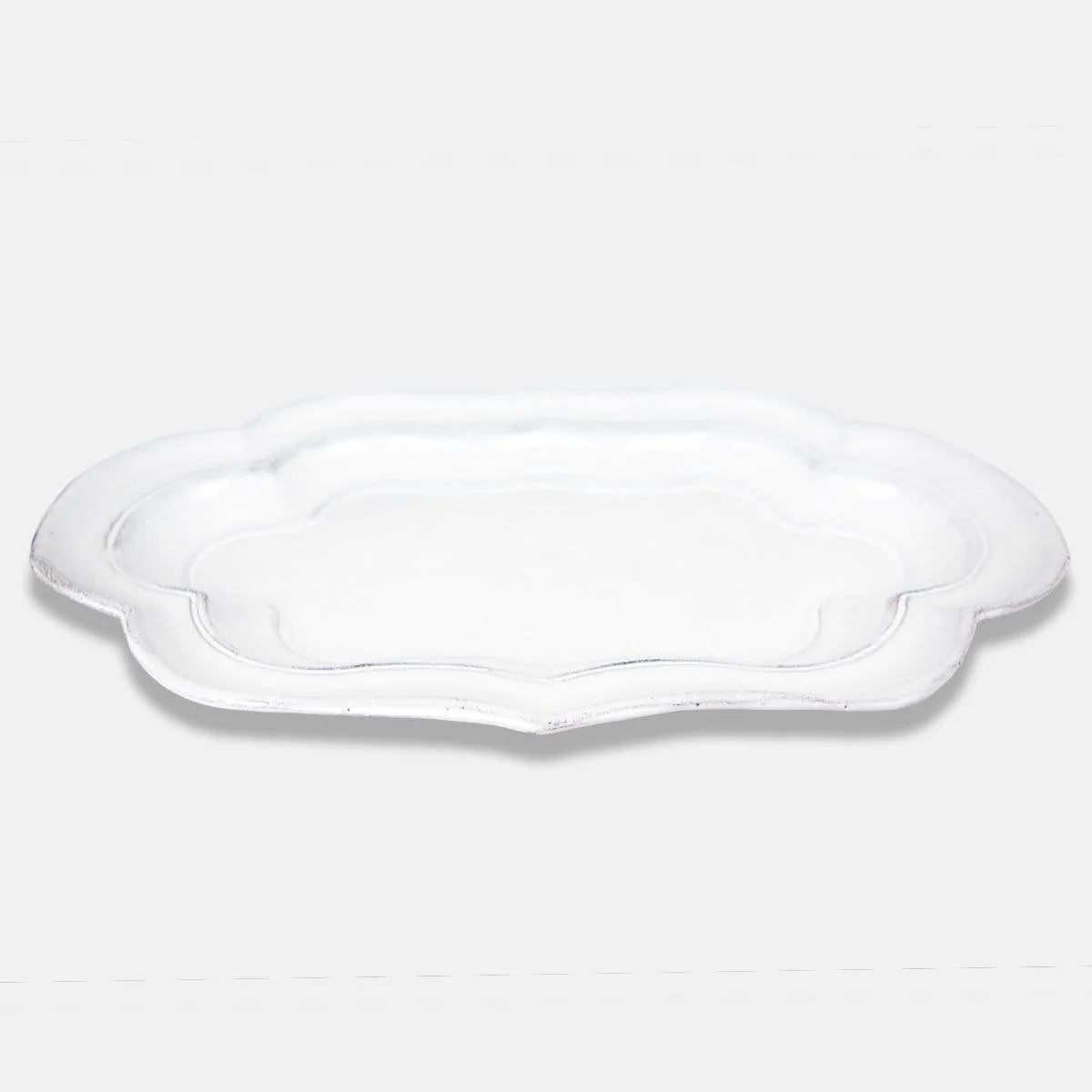 The Mademoiselle Platter - Shallow can be used to serve fish, meats or refined entrees. She was handmade in the CARRON workshop in Paris using a Teracotta clay and glazed with a milky white finish.