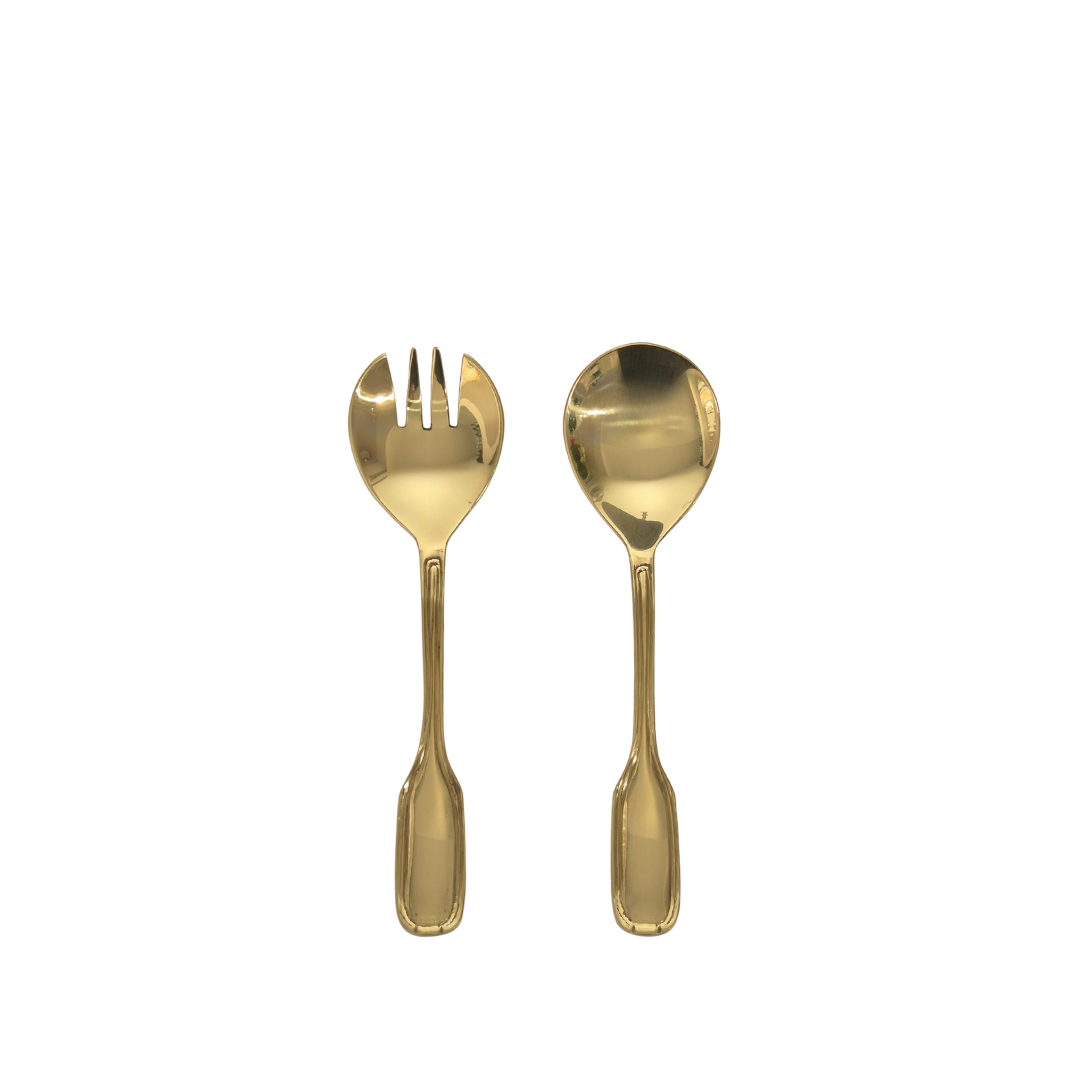 Serve with style using this handcrafted brass fork and spoon duo. Designed for salads, grains, and shared dishes, each piece features elongated handles and sculpted heads for precise, elegant plating.