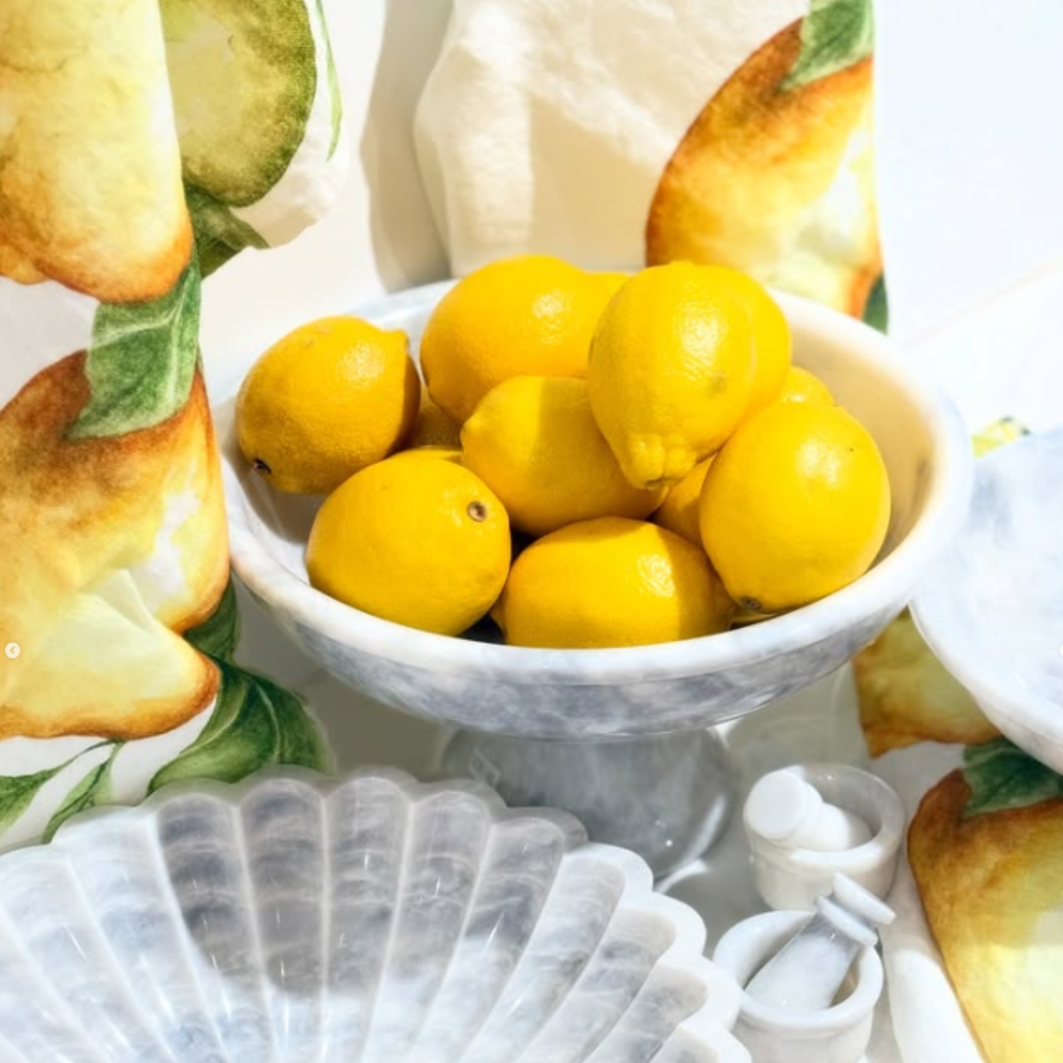 Elevate your kitchen with our Pedestal Marble Fruit Bowl! The perfect way to display and store your fresh fruits, this large bowl boasts a sturdy pedestal base and elegant marble design.