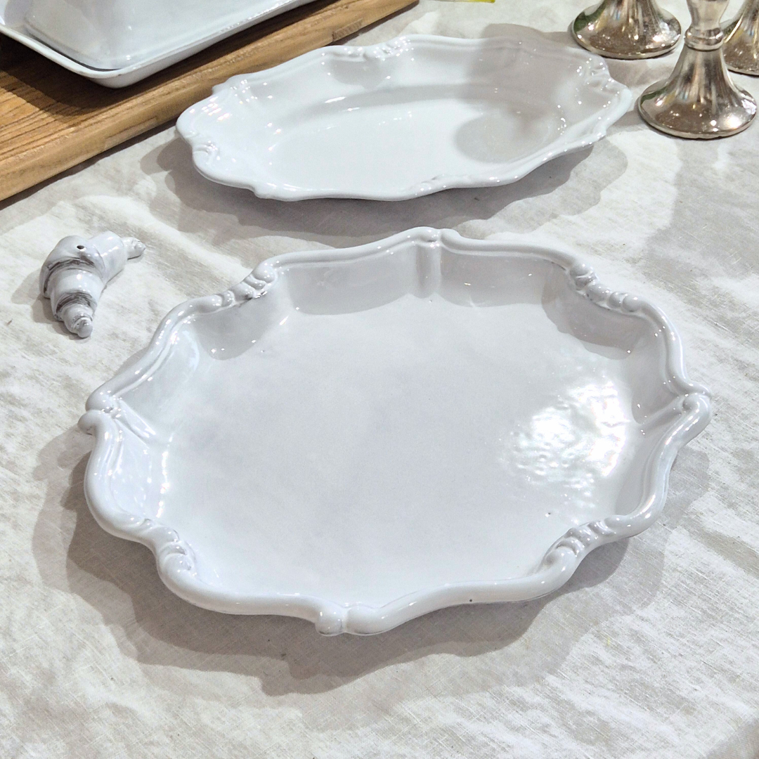 The Saint-Jacques Platter has detailed corners and edges, and is ideal for serving any of your delicious meals. She was handmade in the CARRON workshop in Paris using a Teracotta clay and glazed with a milky white finish.