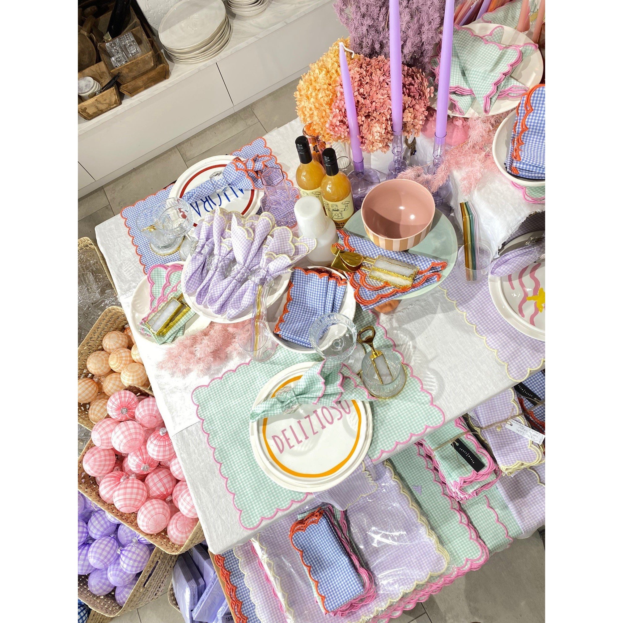 Transform your dining setting into a canvas of elegance with our Tokyo Lilac Placemat. Adorned in a delicate lilac gingham pattern, the placemat unfolds like a tranquil Japanese garden in full bloom. The yellow scalloped edges add a touch of sunshine, creating a harmonious interplay of color and form. Picture each meal as a curated masterpiece, framed by the artful design of the Tokyo Lilac Placemat.