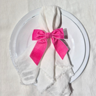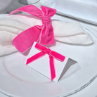 Elevate your table setting with these elegant pink velvet bow napkin rings. Soft to the touch and beautifully crafted, they add a touch of sophistication and charm to any dining occasion. Perfect for weddings, holidays, or special dinners, these napkin rings effortlessly enhance your décor while keeping napkins neatly in place. Make every meal feel extraordinary with this stylish and timeless accessory.