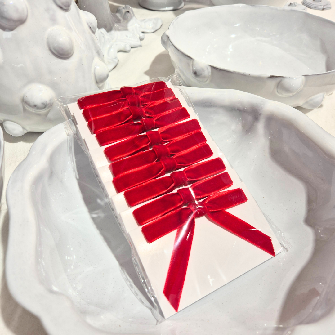 Olive Green Velvet Bow Name Cards | Set-of-10
