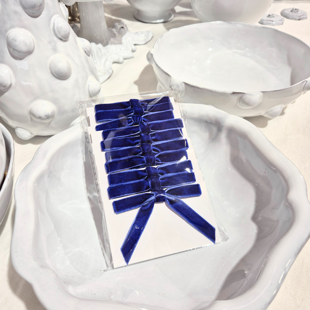 Navy Blue Velvet Bow Name Cards | Set-of-10