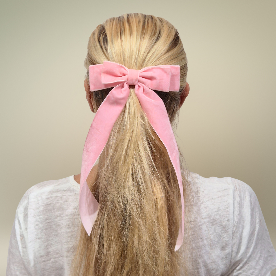 26CM Bow Barrette Hair Clip | Pink Velvet