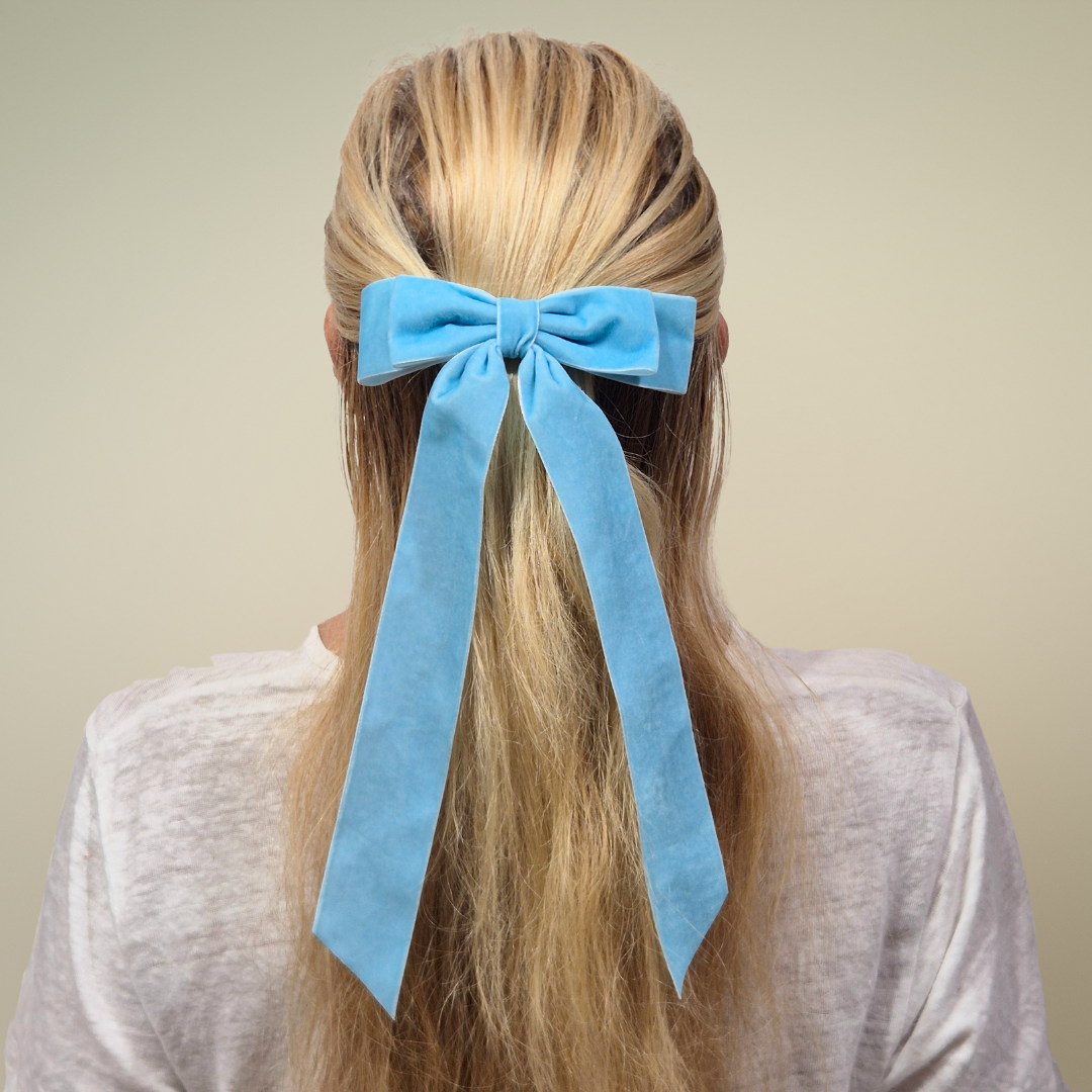 26CM Bow Barrette Hair Clip | Soft Blue Velvet
