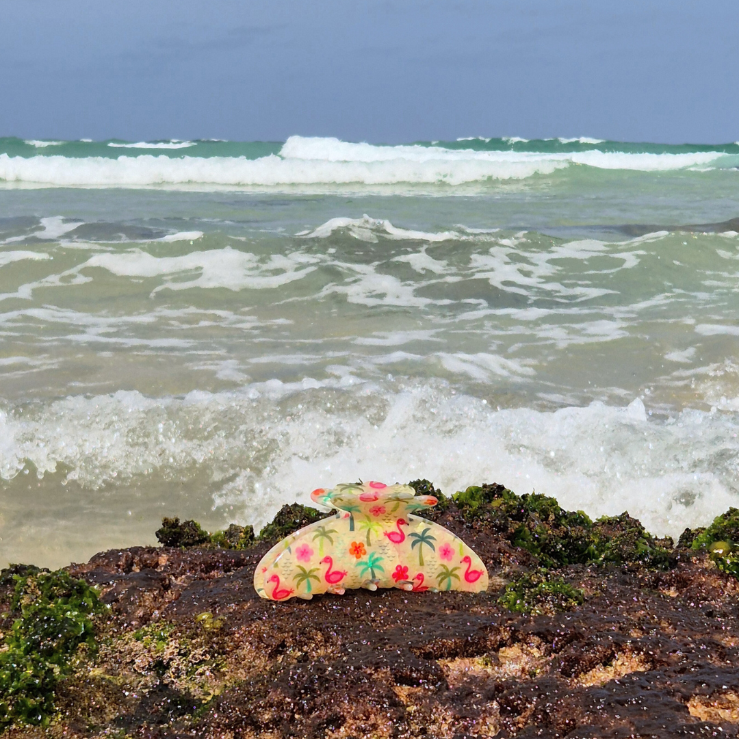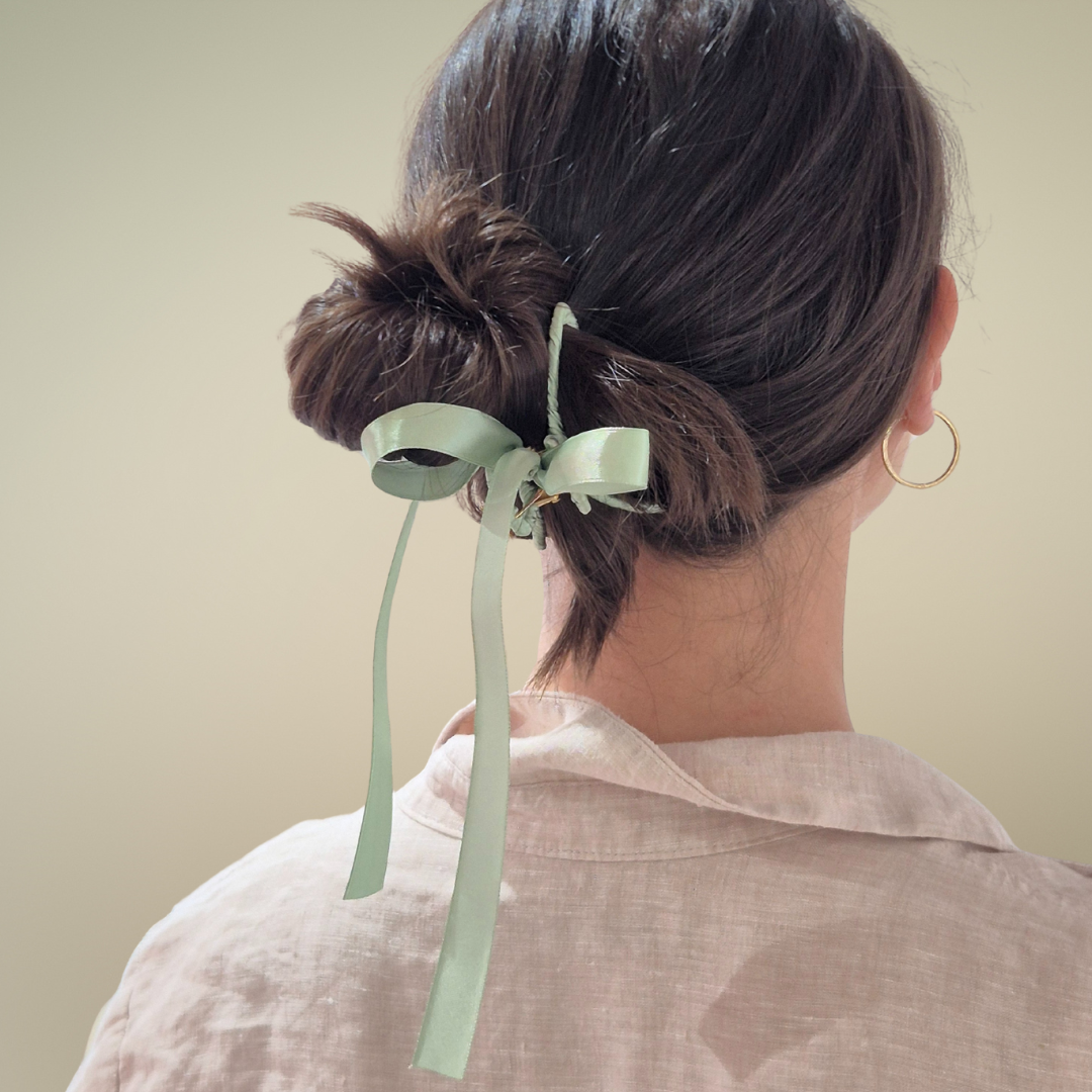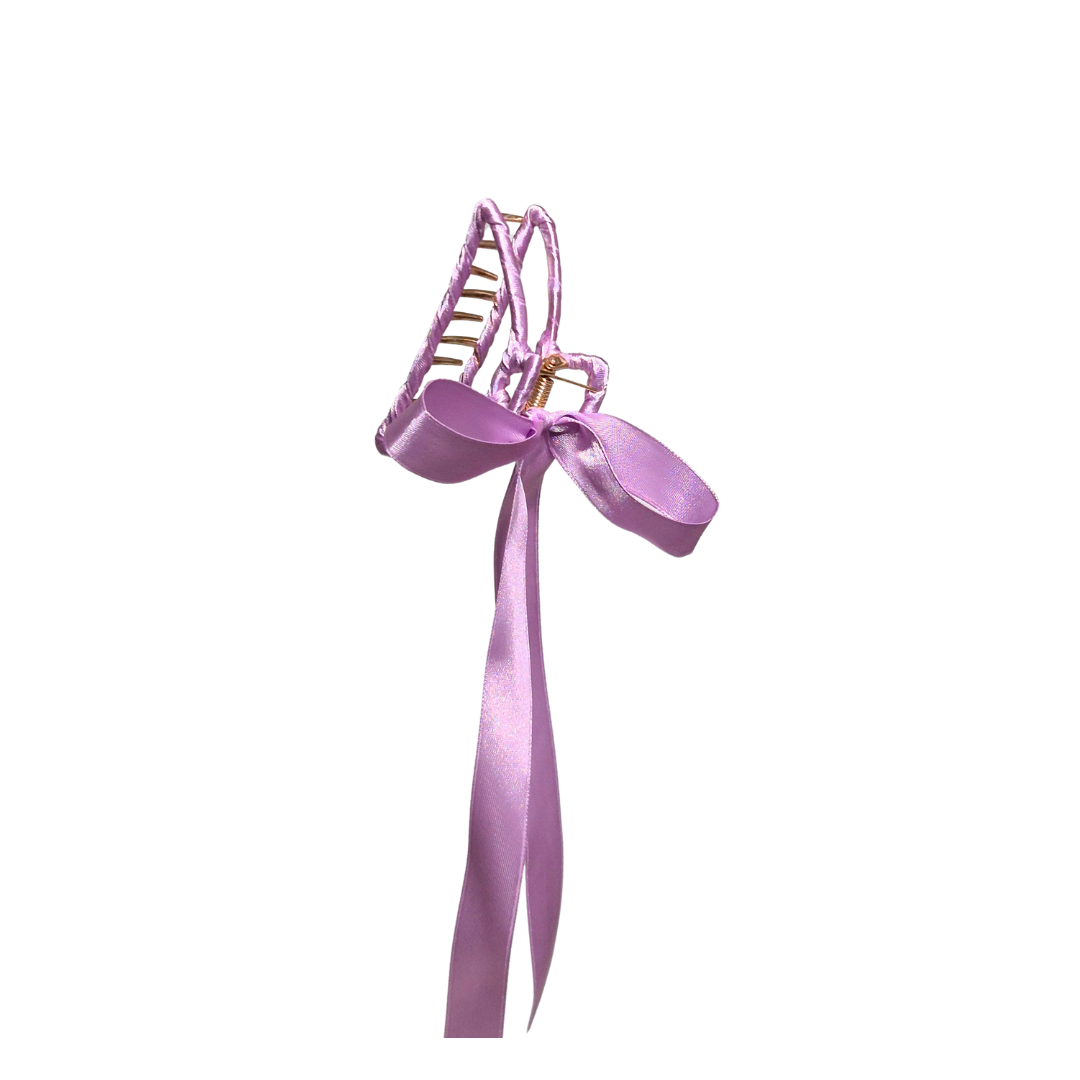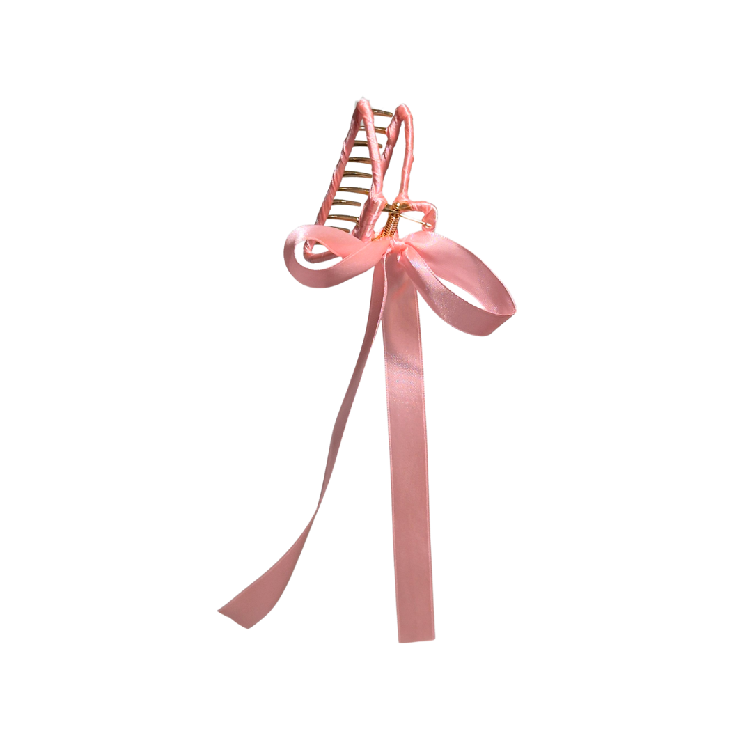 Peachy Pink Ribbon Bow Hair Claw Clip