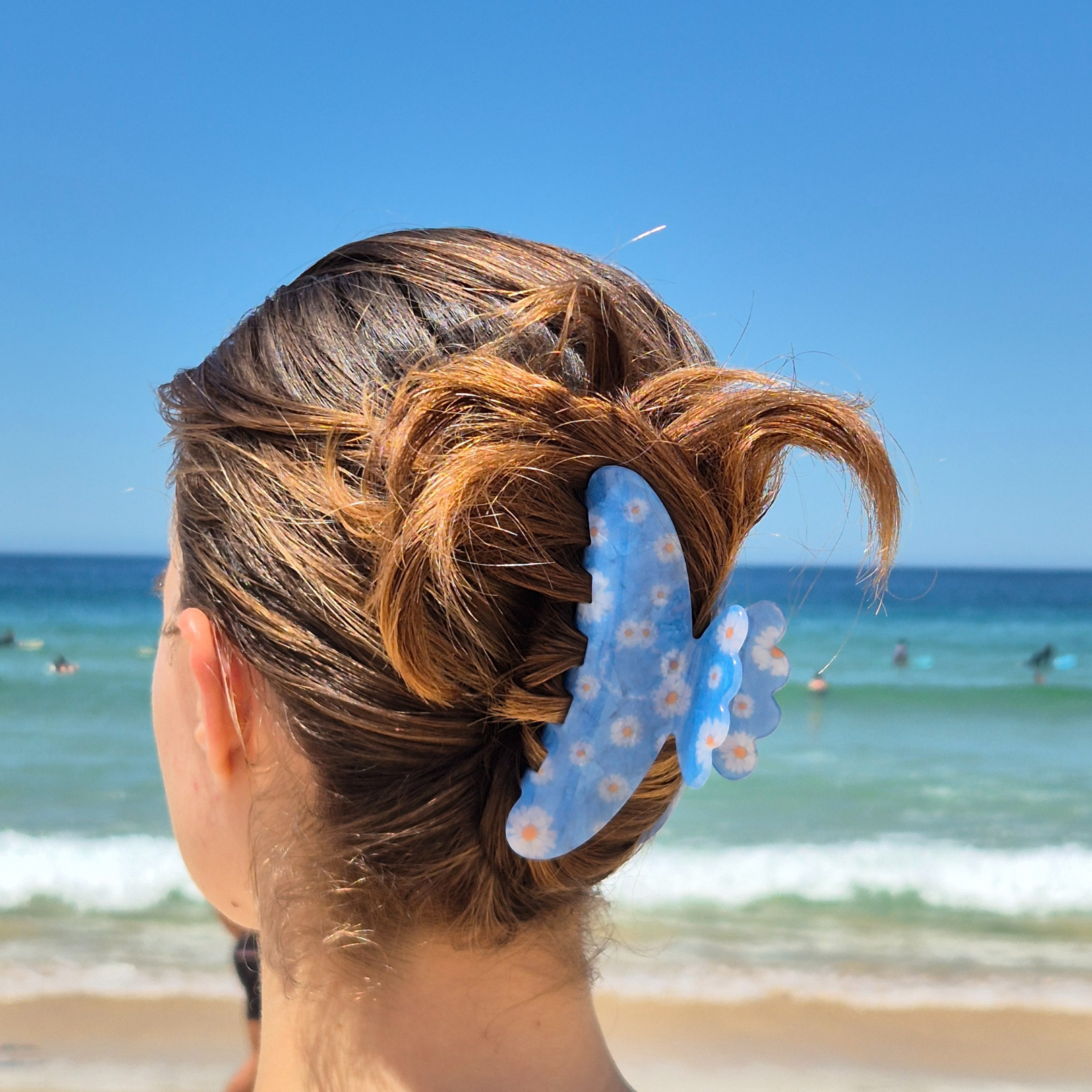 Inspired by daisies reaching toward a clear blue sky, this floral hair claw adds a soft, airy touch to everyday styling. Lightweight, secure, and effortlessly charming.