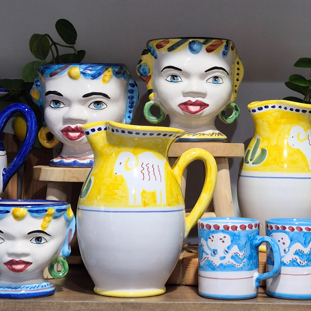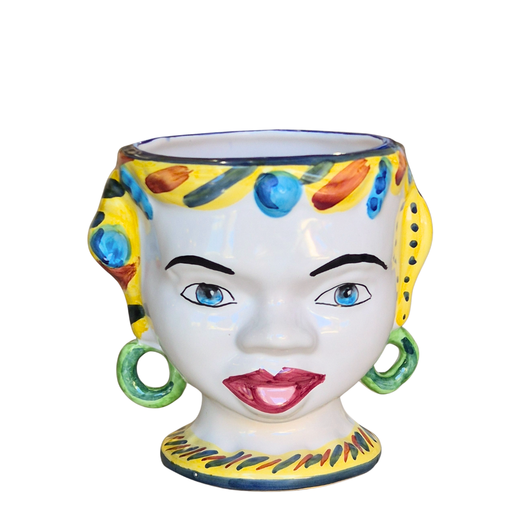 A beautifully hand-painted Italian Moro head crafted in the Amalfi Coast. Rich in colour and expressive detail, this traditional Sicilian-inspired piece serves as a striking vase for fresh or dried flowers. A bold statement of Mediterranean artistry for any home.