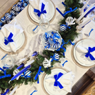 These name cards feature a plain white base designed for writing names, each accented with an electric blue velvet bow. Sold in sets of 10, they offer a stylish and elegant way to personalize your event seating arrangements.