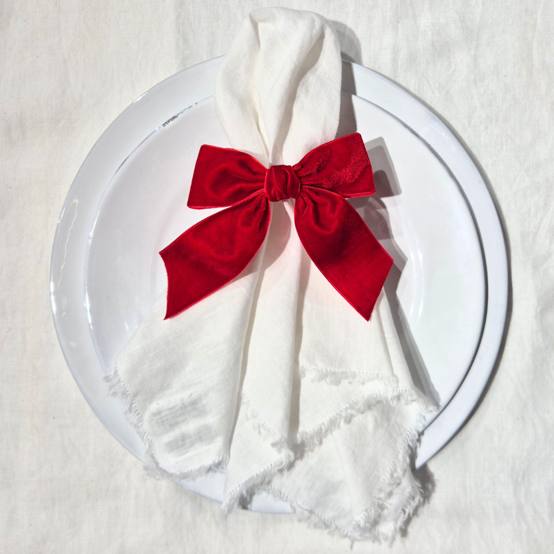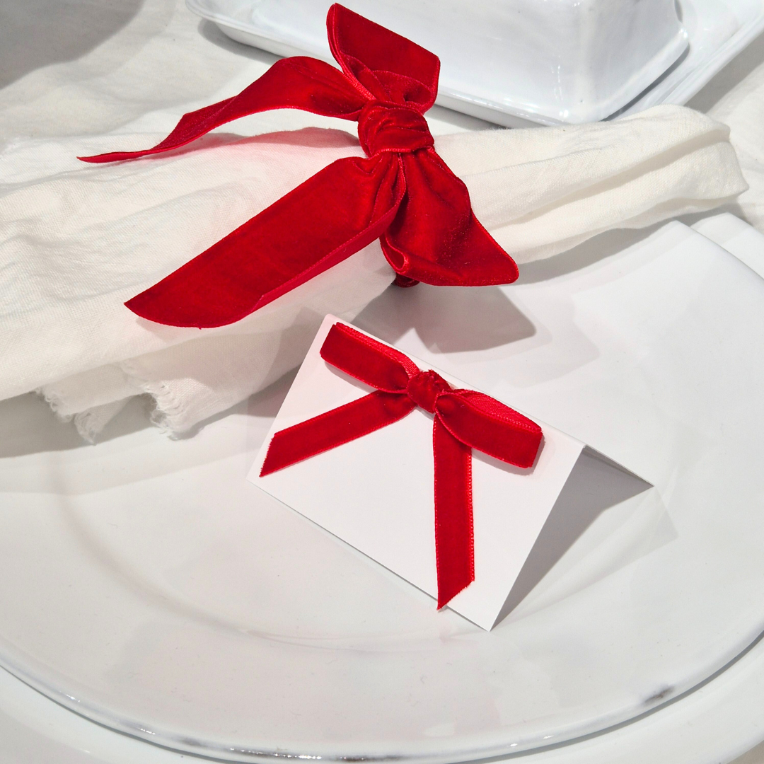 Elevate your table setting with these elegant red velvet bow napkin rings. Soft to the touch and beautifully crafted, they add a touch of sophistication and charm to any dining occasion. Perfect for weddings, holidays, or special dinners, these napkin rings effortlessly enhance your décor while keeping napkins neatly in place. Make every meal feel extraordinary with this stylish and timeless accessory.