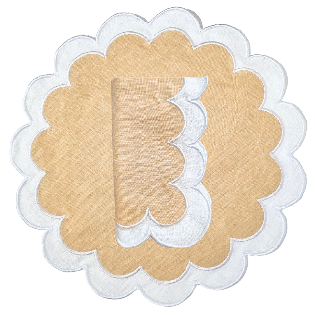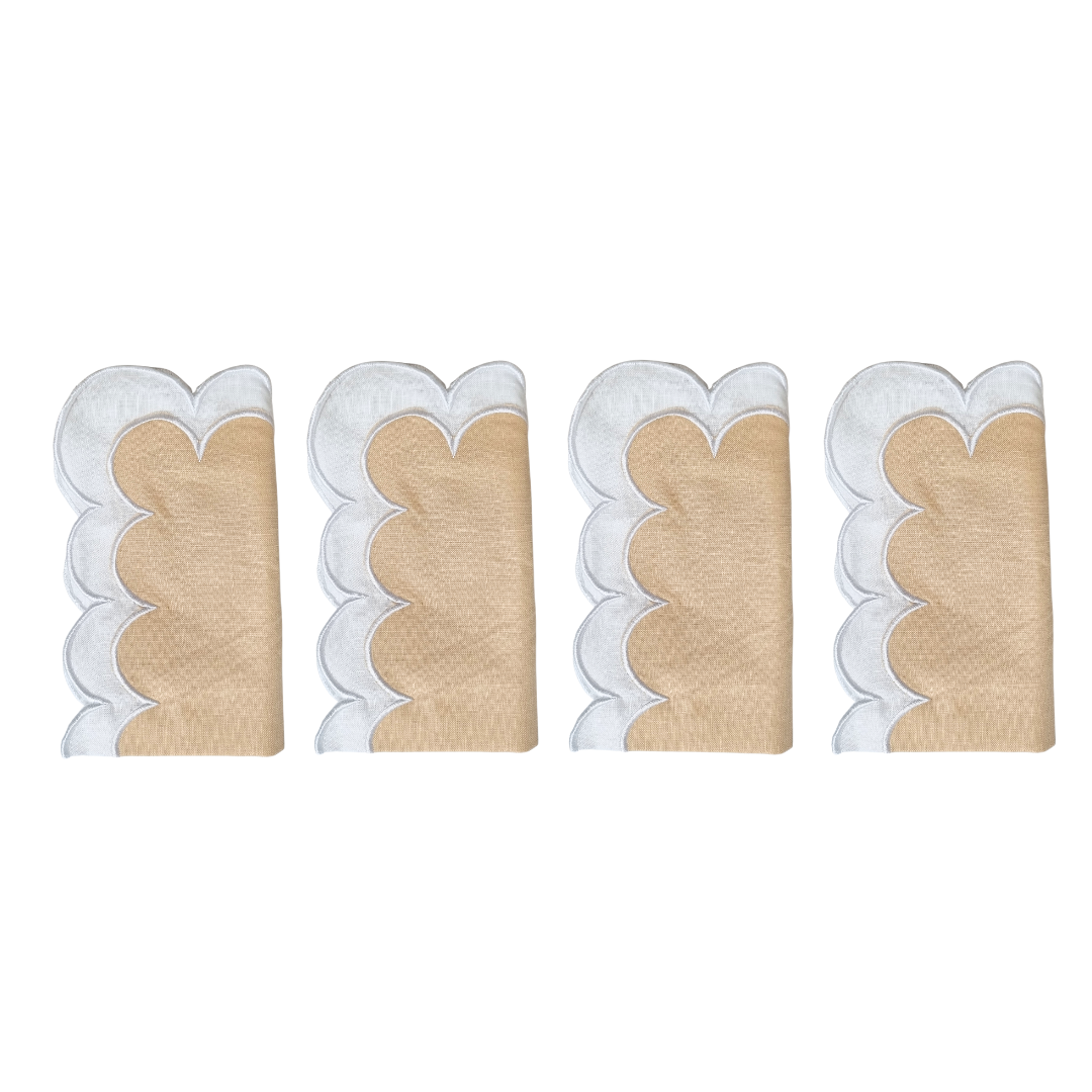 Use our Noon Napkins to enhance your table settings and dinner party decor. A set of four square napkins with a scalloped edge, this set is nothing short of beautiful.