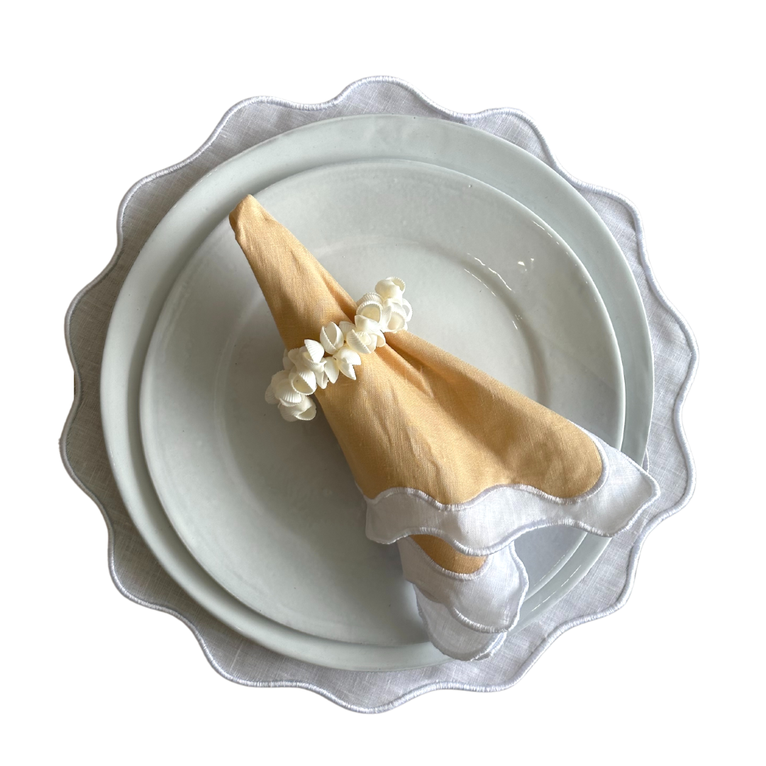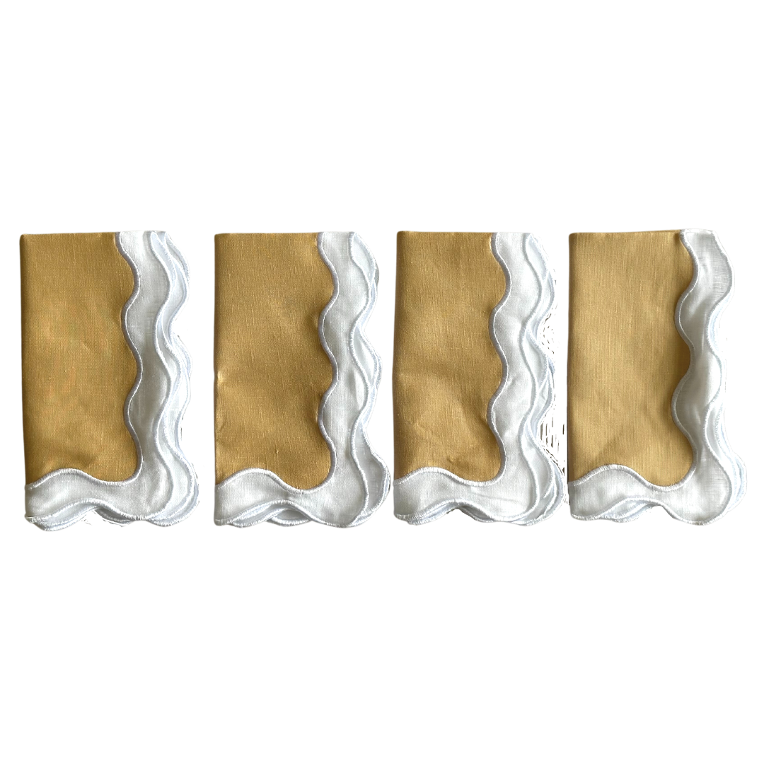 Use our Sandy Bay Napkins to enahnce your table settings and dinner party decor. A set of four square napkins with a wave edge, this set is nothing short of beautiful.