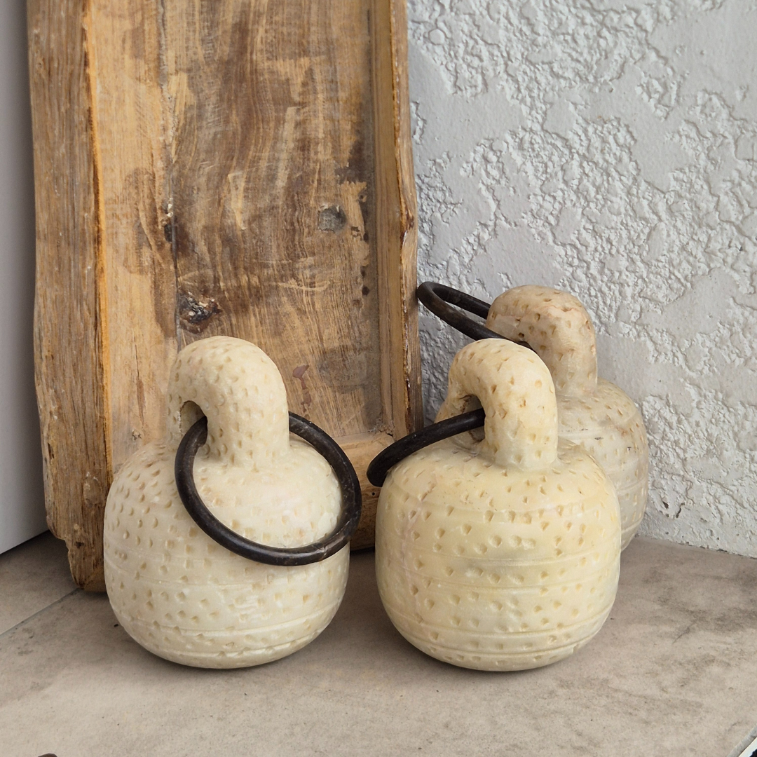 Ideal for keeping your doors secure and adding a touch of elegance to your home, these stone door stoppers with a round metal ring handle are both functional and decorative. Place them strategically to prevent doors from slamming shut while enhancing the aesthetic appeal of your space.