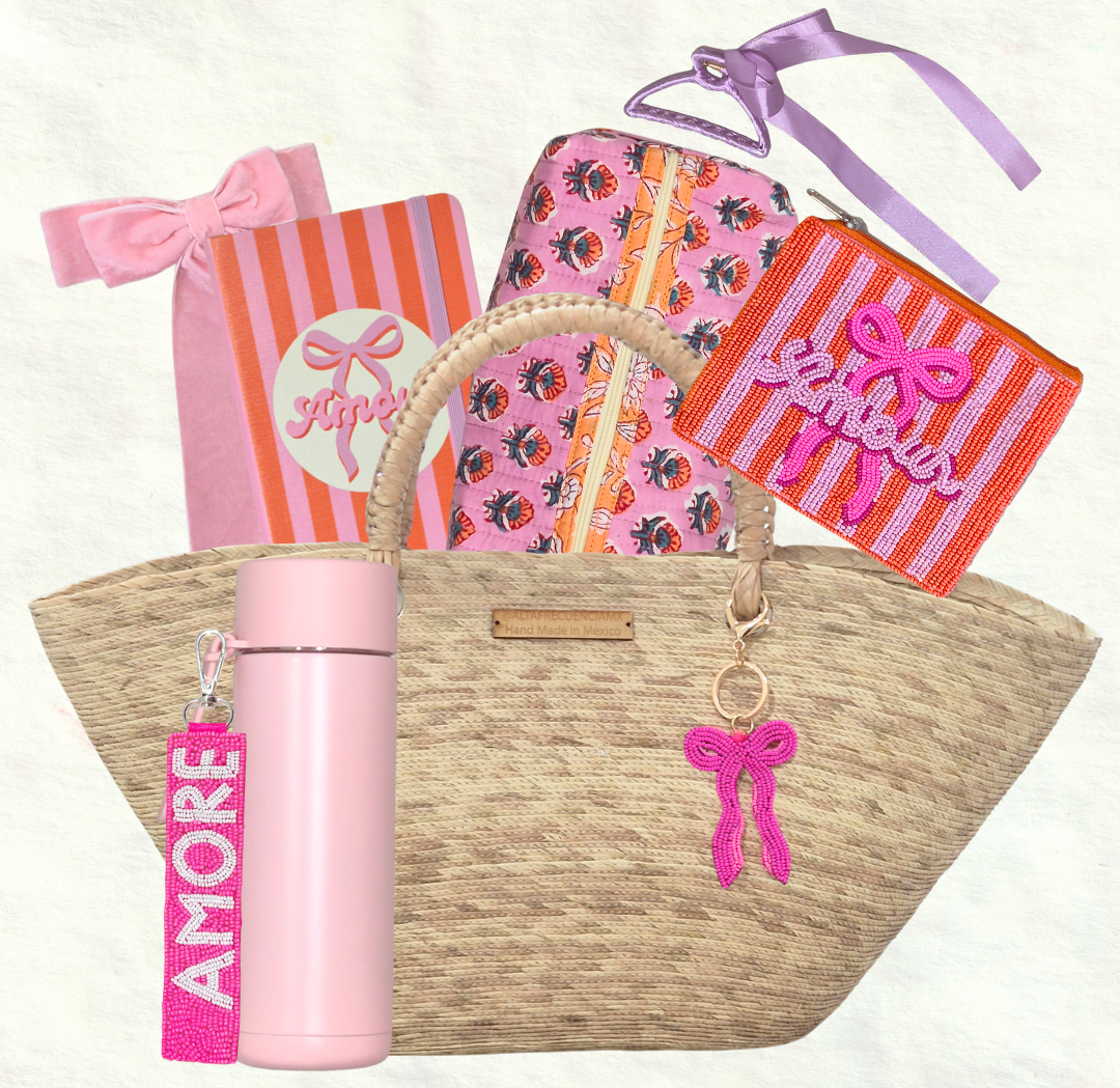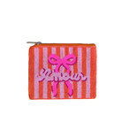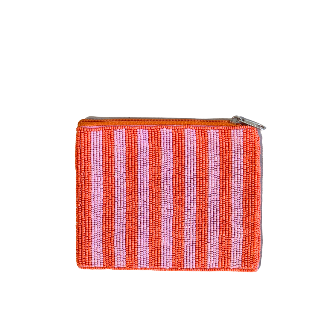 The perfect little striped beaded purse for your cards and keys. Bold and beautiful, this pouch was designed to celebrate the timeless charm of the bow while staying on trend with the coral and pink colour pallette.