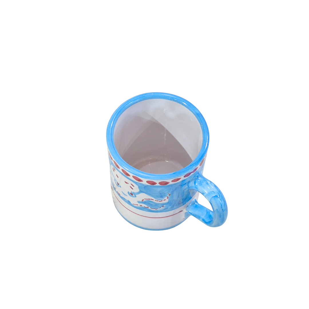 A playful hand-painted Italian mug featuring a charming octopus motif in refreshing coastal blue tones. Perfect for coffee, tea, or hot chocolate, it brings a fun Mediterranean touch to your daily routine. Crafted in Italy with artisanal detail.