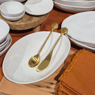 Forged from solid brass, this compact knife is designed for soft cheeses, butter, dips, or spreads. Its flat, gently rounded blade allows for smooth application, while the refined handle offers a balanced, comfortable grip. Minimalist yet warm, it complements any table with a touch of golden elegance. Plus, it’s dishwasher safe for effortless clean-up.