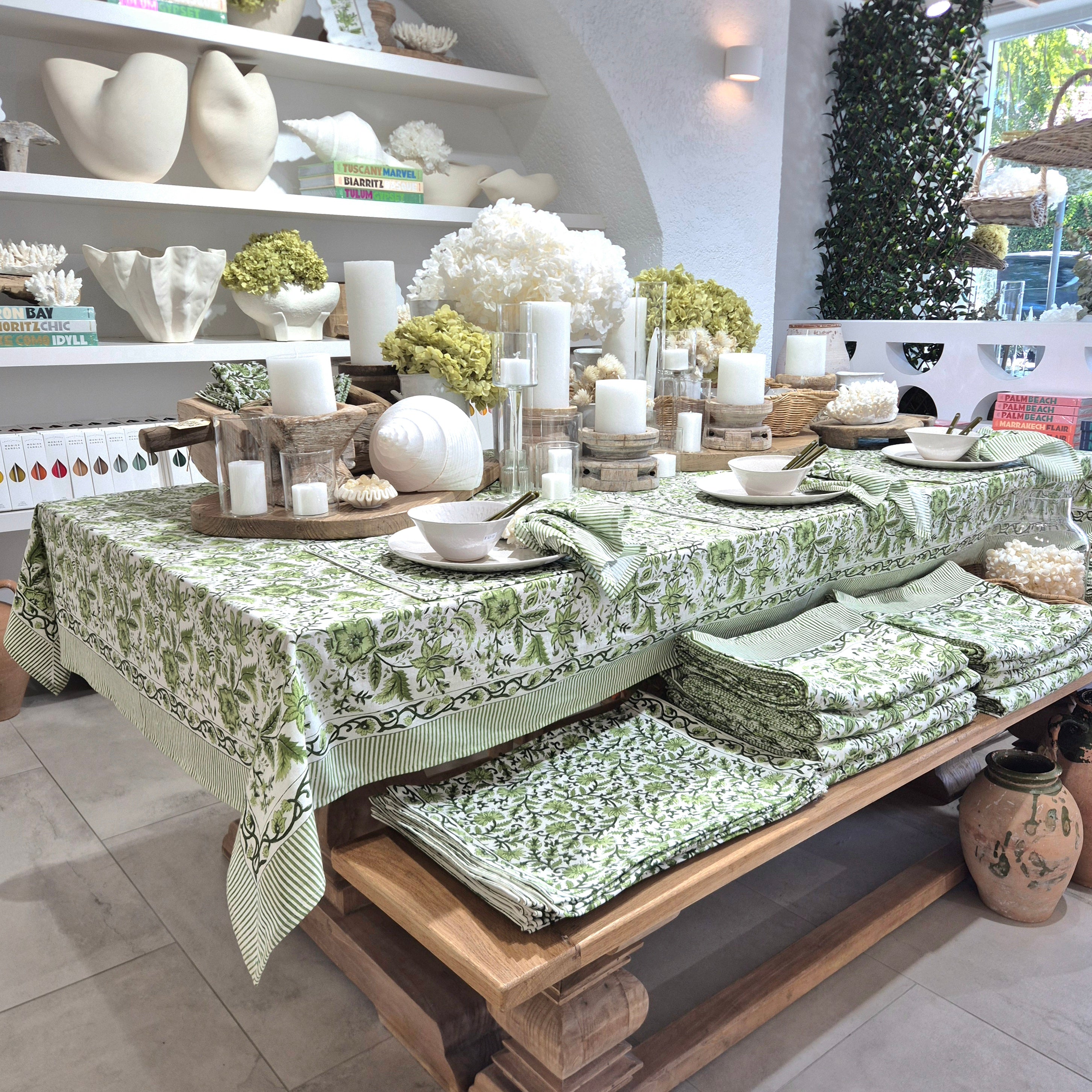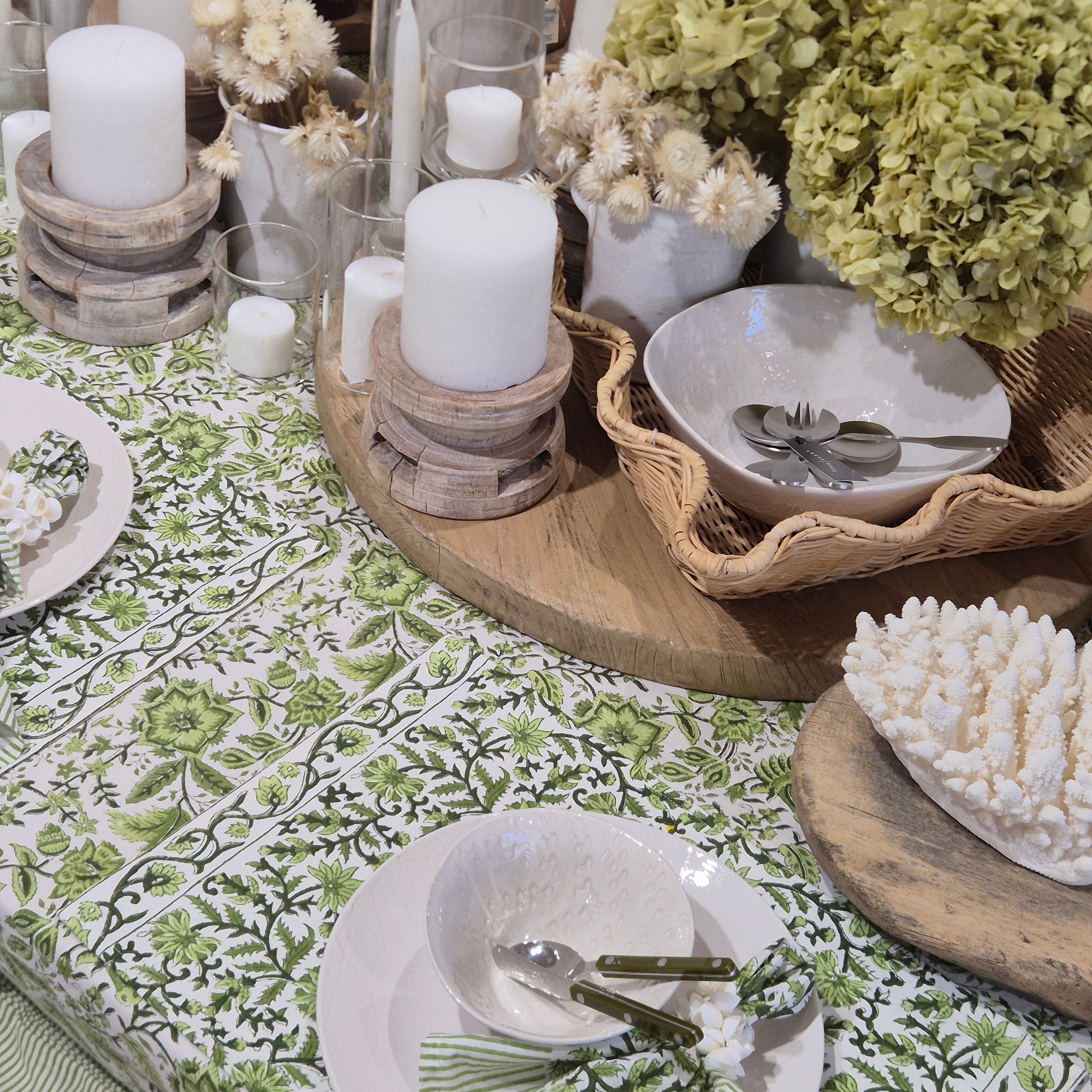 Our Garden Palace tablecloths make the perfect base for your tablescapes. They are inspired by Eastern floral motifs showcasing traditional Indian blockprinting techniques. The Garden Palace tablecloth create and elevate the atmosphere of any event you are hosting- from a casual lunch with friends to more sophisticated dining events. Complete the garden look with the matching serviettes and placemats.