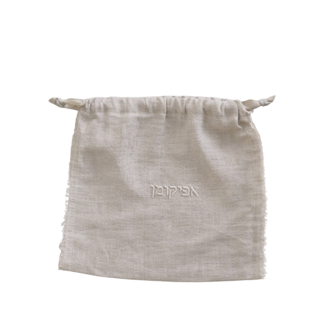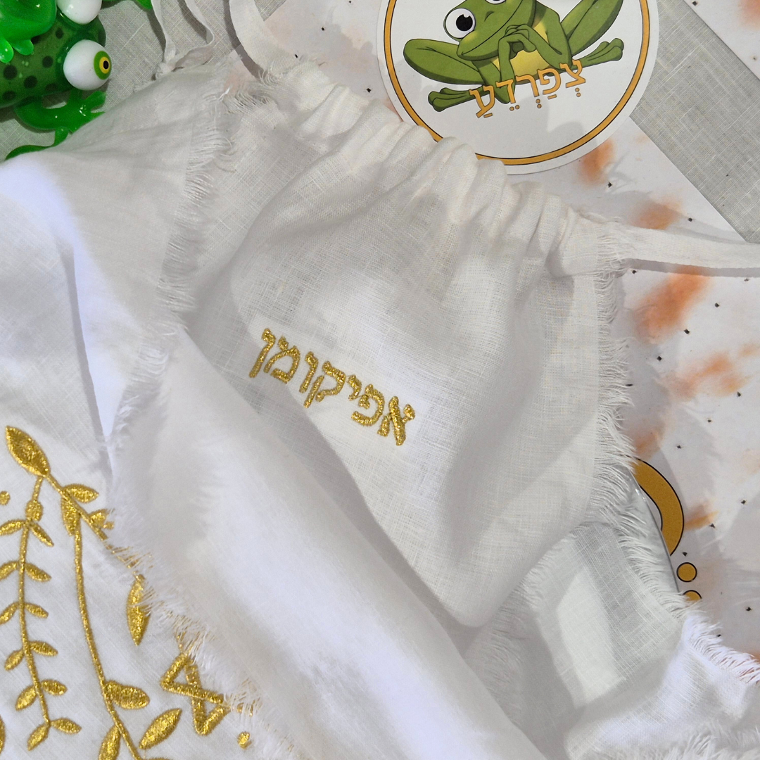 Linen Afikomen Bag | White w/ Gold Embroidery