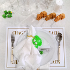 These name cards feature a plain white base designed for writing names, with a gold frame border on the front side. Sold in sets of 10, they offer a stylish and elegant way to personalize your event seating arrangements.
