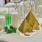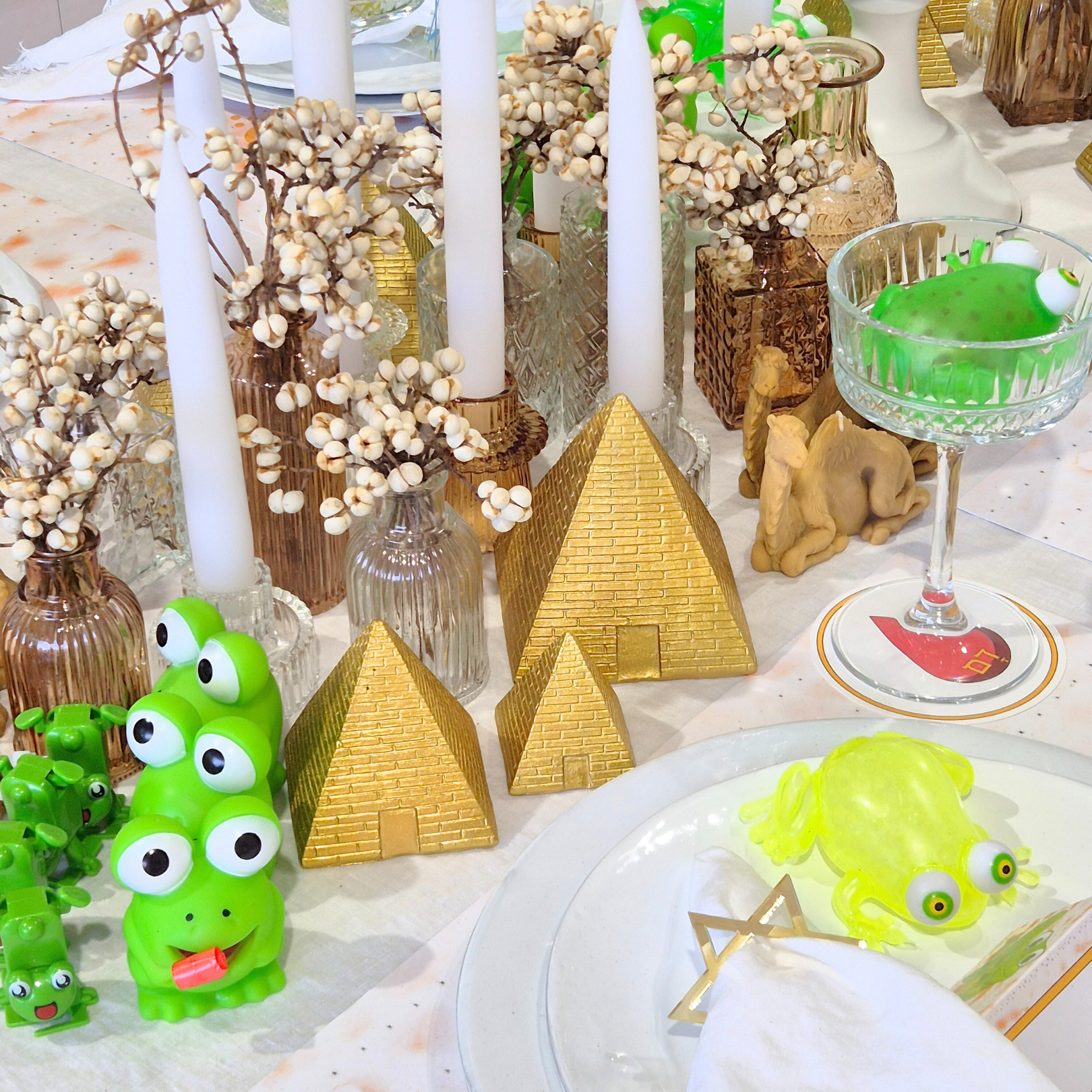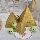 Elevate your Passover table with these cute gold pyramid sculptures, a symbolic nod to the story of Exodus. Crafted with intricate brick detailing and a lustrous gold finish, this stunning piece captures the essence of ancient Egypt while adding a touch of sophistication to your Seder setting.