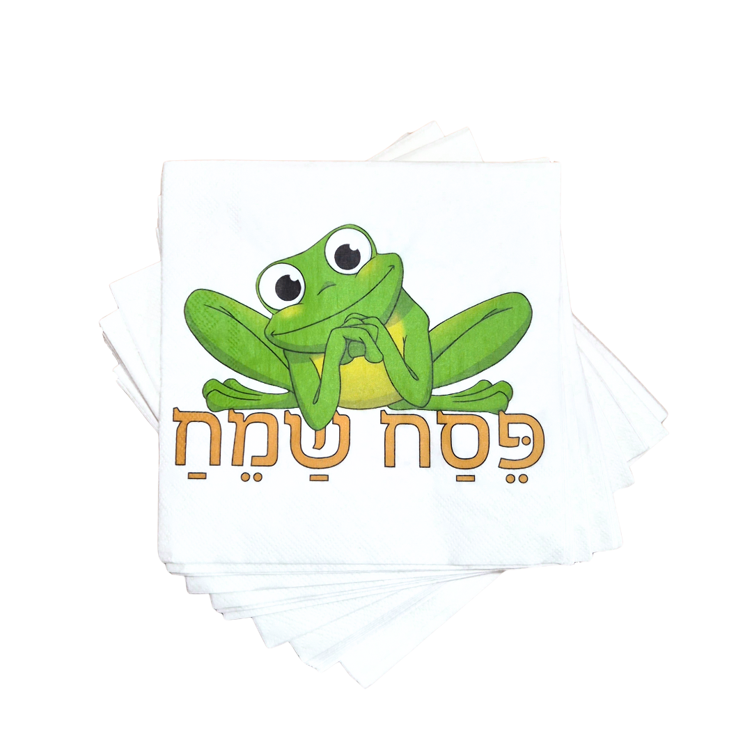 Add a fun and festive touch to your Passover table with these charming disposable napkins! Featuring an adorable green frog illustration and the Hebrew phrase: