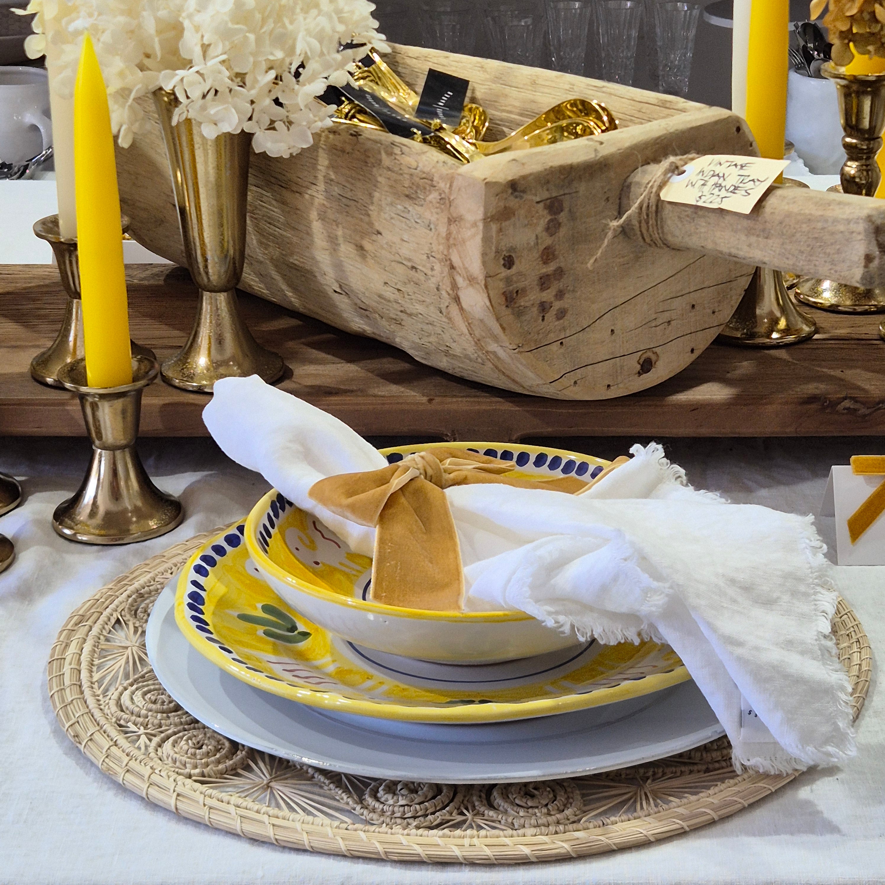 Create a magnificent tablescape with our Iraca Palm placemats. Handwoven by artisans in Colombia, these placemats add a stunning pattern and texture to your displays.