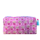 Crafted from soft organic cotton, this quilted toiletry/cosmetic bag features a charming block-printed design, bringing a touch of artisanal elegance to your daily and travel routine. Handmade in India, it combines eco-friendly materials with timeless style, making it the perfect companion for organizing your cosmetics and travel essentials while supporting sustainable craftsmanship.