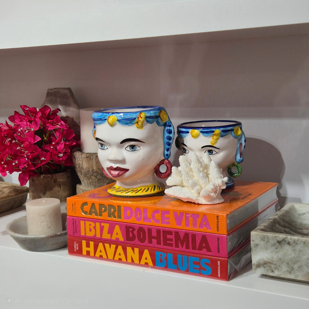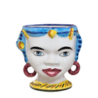 A beautifully hand-painted Italian Moro head crafted in the Amalfi Coast. Rich in colour and expressive detail, this traditional Sicilian-inspired piece serves as a striking vase for fresh or dried flowers. A bold statement of Mediterranean artistry for any home.