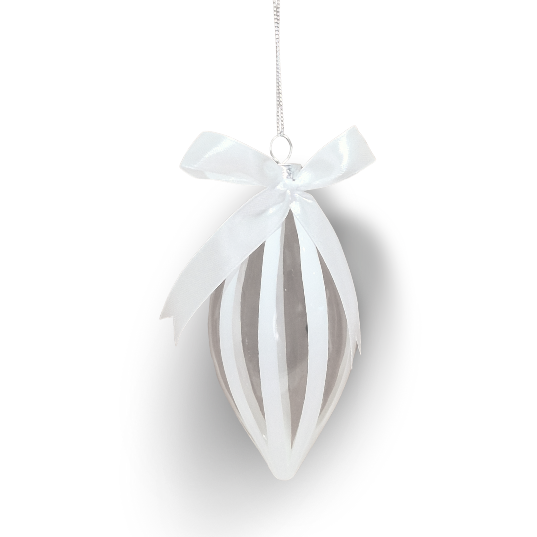 Transform your holiday décor with this white striped bauble, part of our versatile Riviera Christmas collection. Available in three distinct shapes and multiple colour options, these festive ornaments offer endless styling possibilities to suit your unique seasonal aesthetic and tree design preferences.